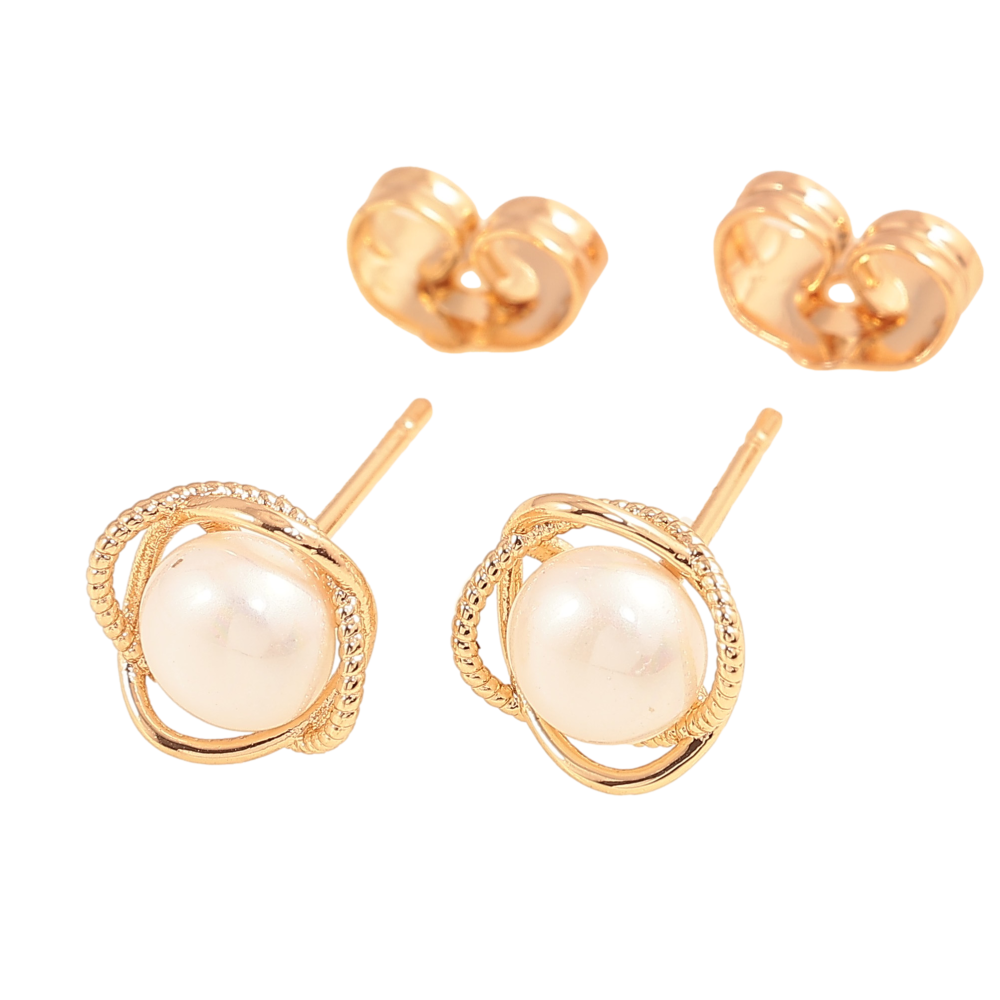 Серьги Xuping цвет Позолота 18К пусеты "Цветочки с жемчужинами" фото №1