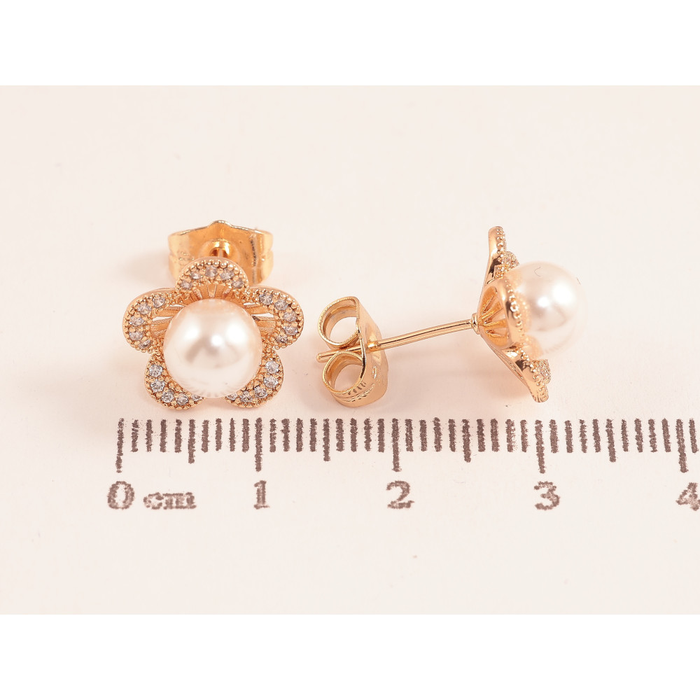 Серьги Xuping цвет Позолота 18К пусеты "Цветочки с жемчужинами и кристаллами"