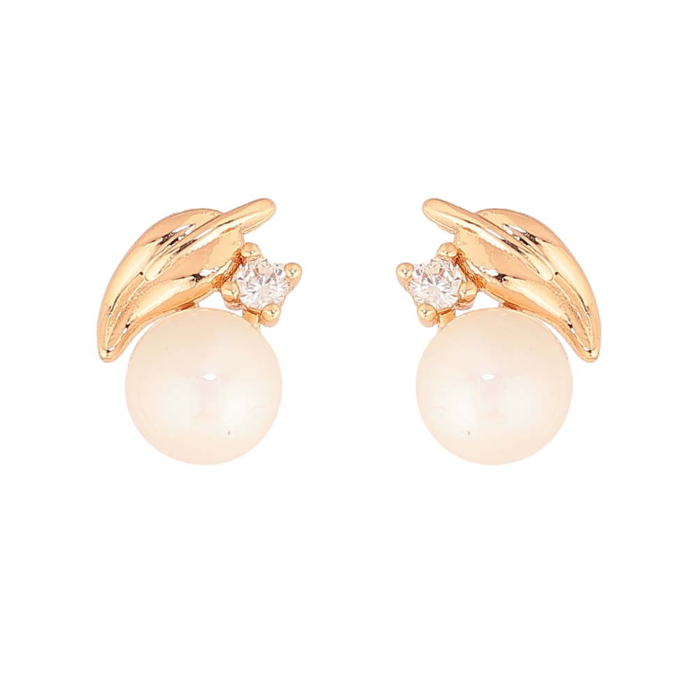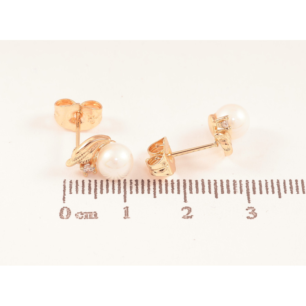 Серьги Xuping цвет Позолота 18К пусеты "Листики с кристаллами и жемчужинами"