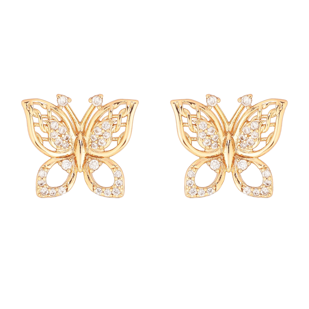 Серьги Xuping цвет Позолота 18К пусеты "Бабочки с кристаллами"