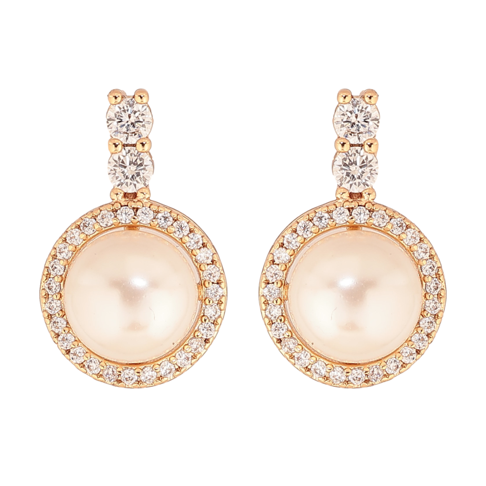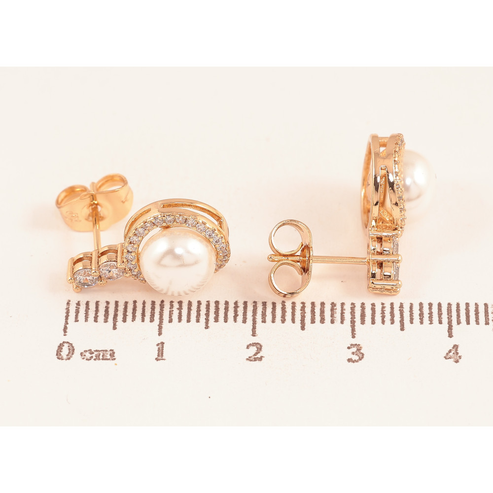 Серьги Xuping цвет Позолота 18К пусеты "Жемчужины в обрамлении кристаллов"