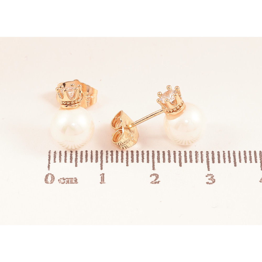 Серьги Xuping цвет Позолота 18К пусеты "Жемчужины с короной"