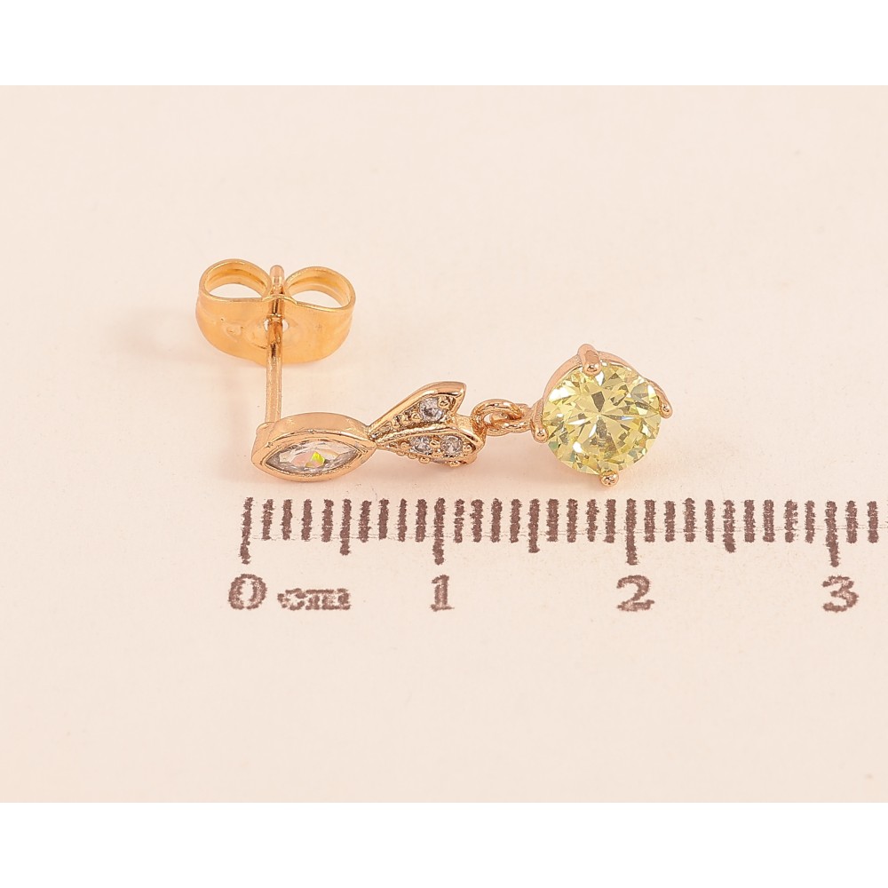 Серьги Xuping цвет Позолота 18К пусеты "Подвески с лимонными кристаллами"