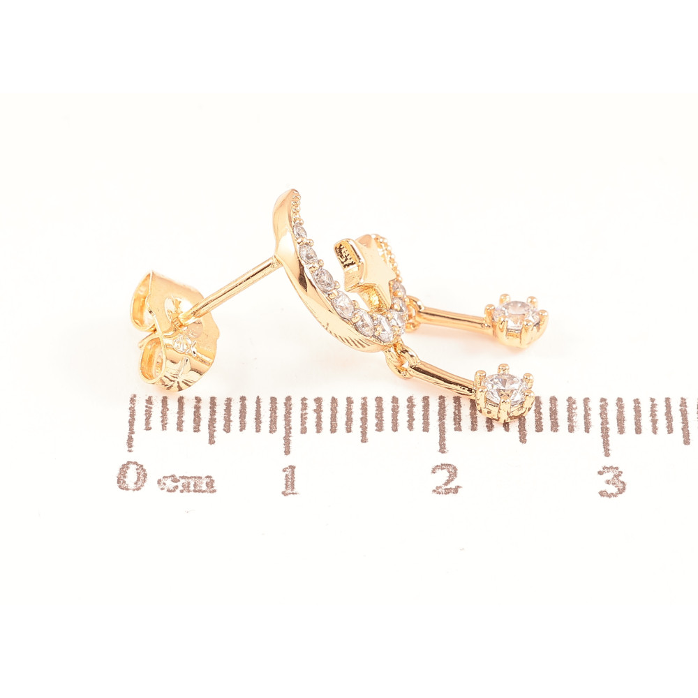 Серьги Xuping цвет Позолота 18К пусеты "Полумесяц со звездой и кристальными подвесками"