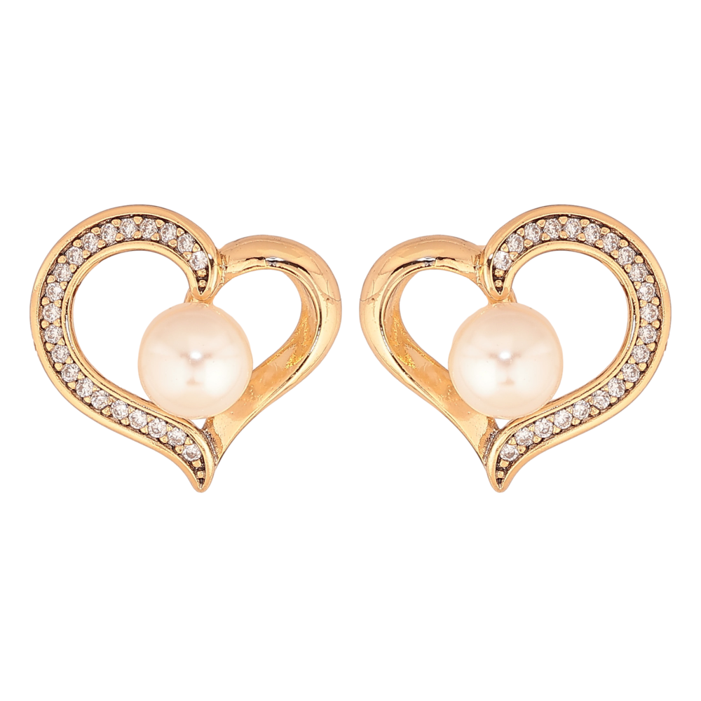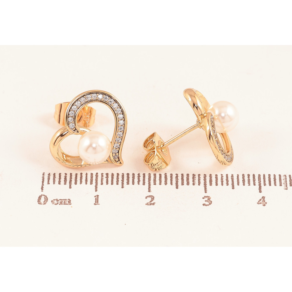 Серьги Xuping цвет Позолота 18К пусеты "Сердечки с кристаллами и жемчужинами"