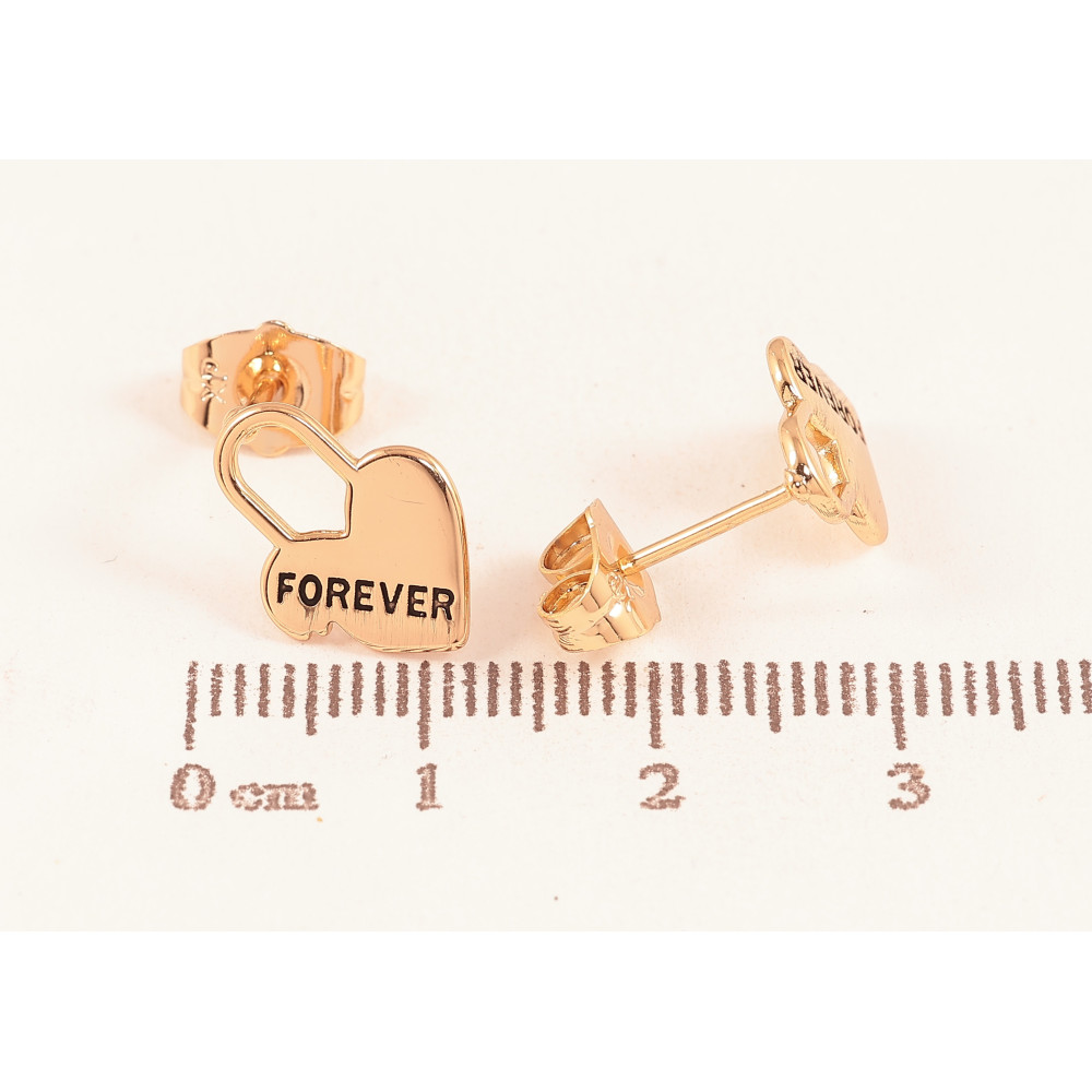 Серьги Xuping цвет Позолота 18К пусеты "Сердечки-замочки с надписью Forever"