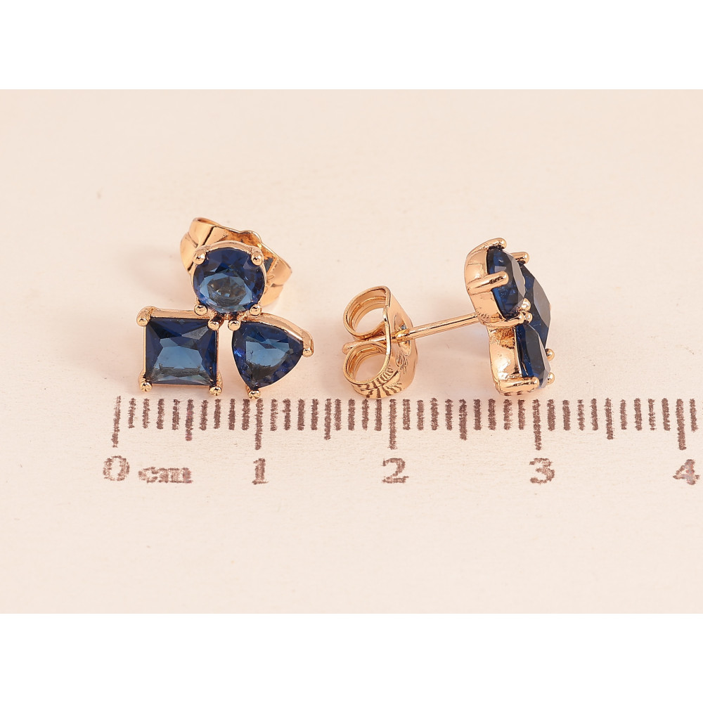 Серьги Xuping цвет Позолота 18К пусеты "Синие кристаллы" фото №1