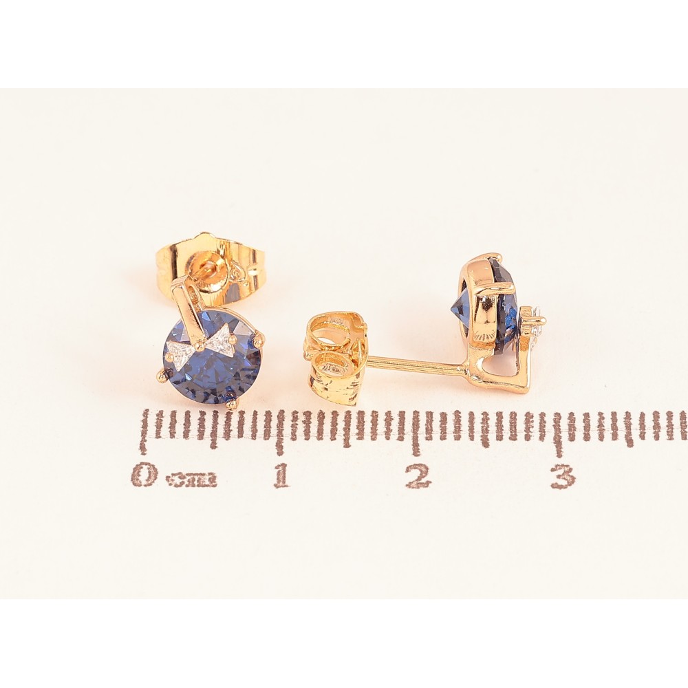 Серьги Xuping цвет Позолота 18К пусеты "Синие кристаллы с бантами"