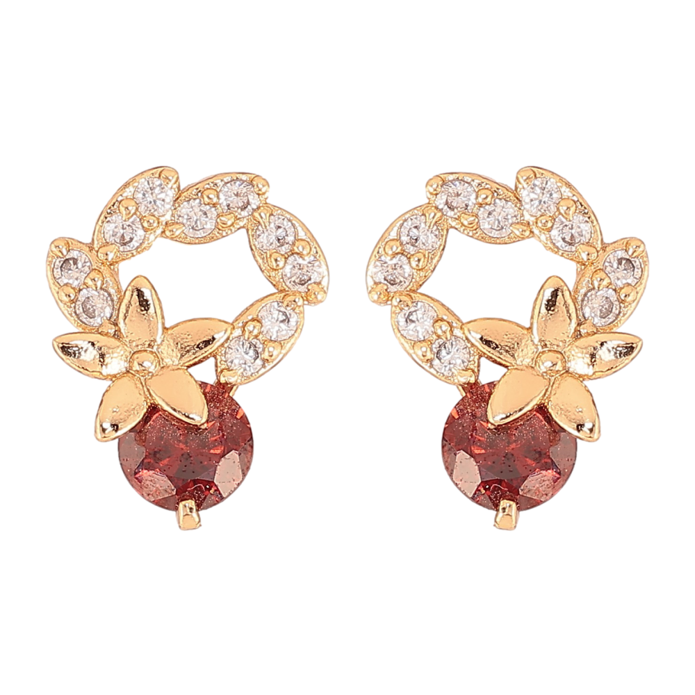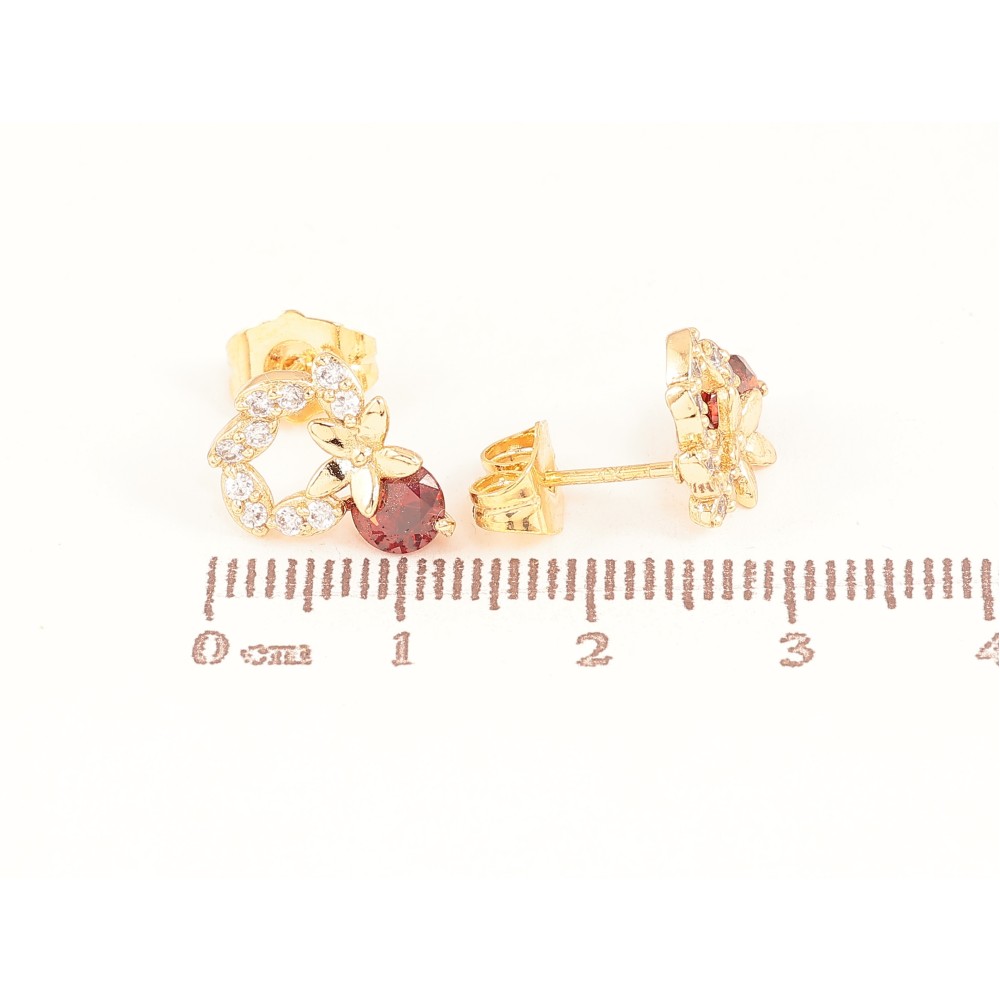 Серьги Xuping цвет Позолота 18К пусеты "Веночки с цветочками и красными кристаллами"