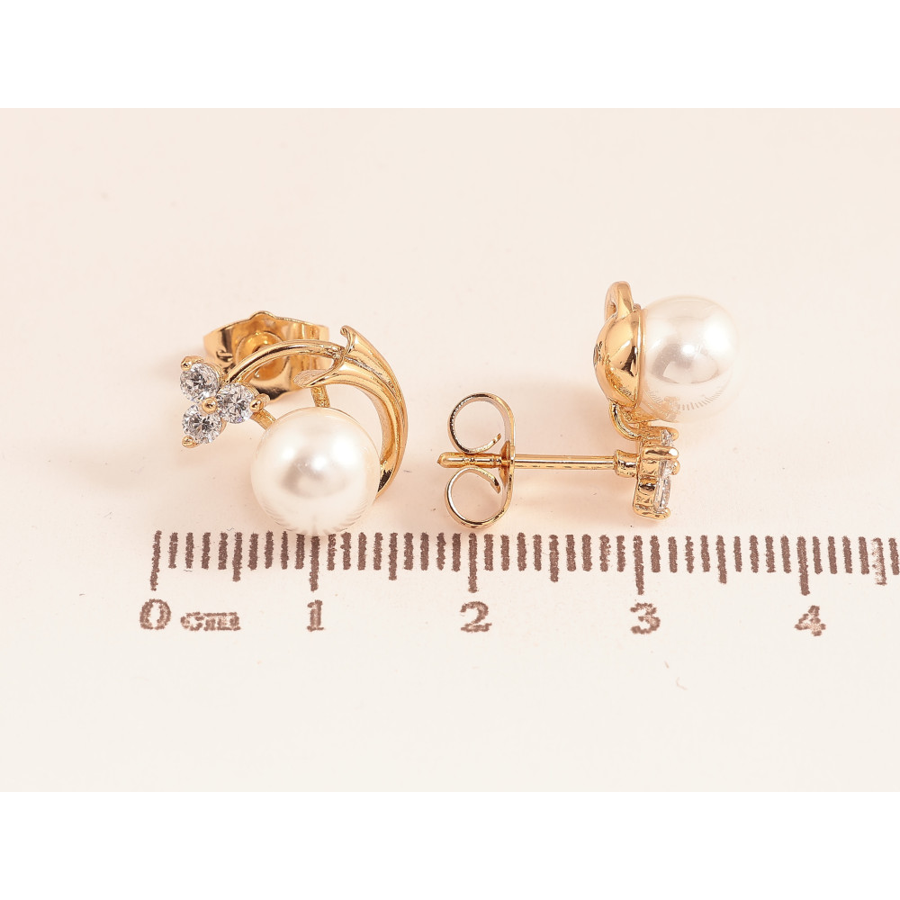 Серьги Xuping цвет Позолота 18К пусеты "Узор с жемчужинами и кристаллами"