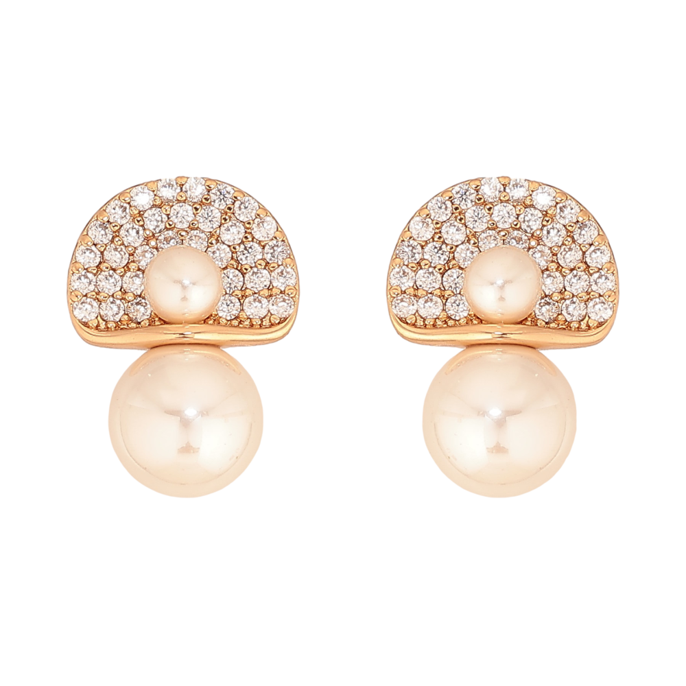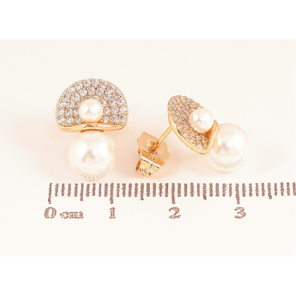 Серьги Xuping цвет Позолота 18К пусеты "Узор с жемчужинами и кристаллами"