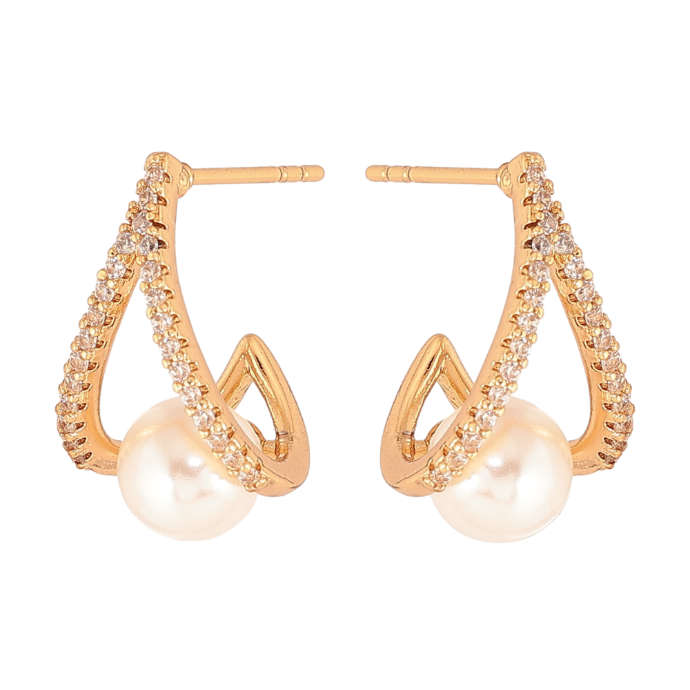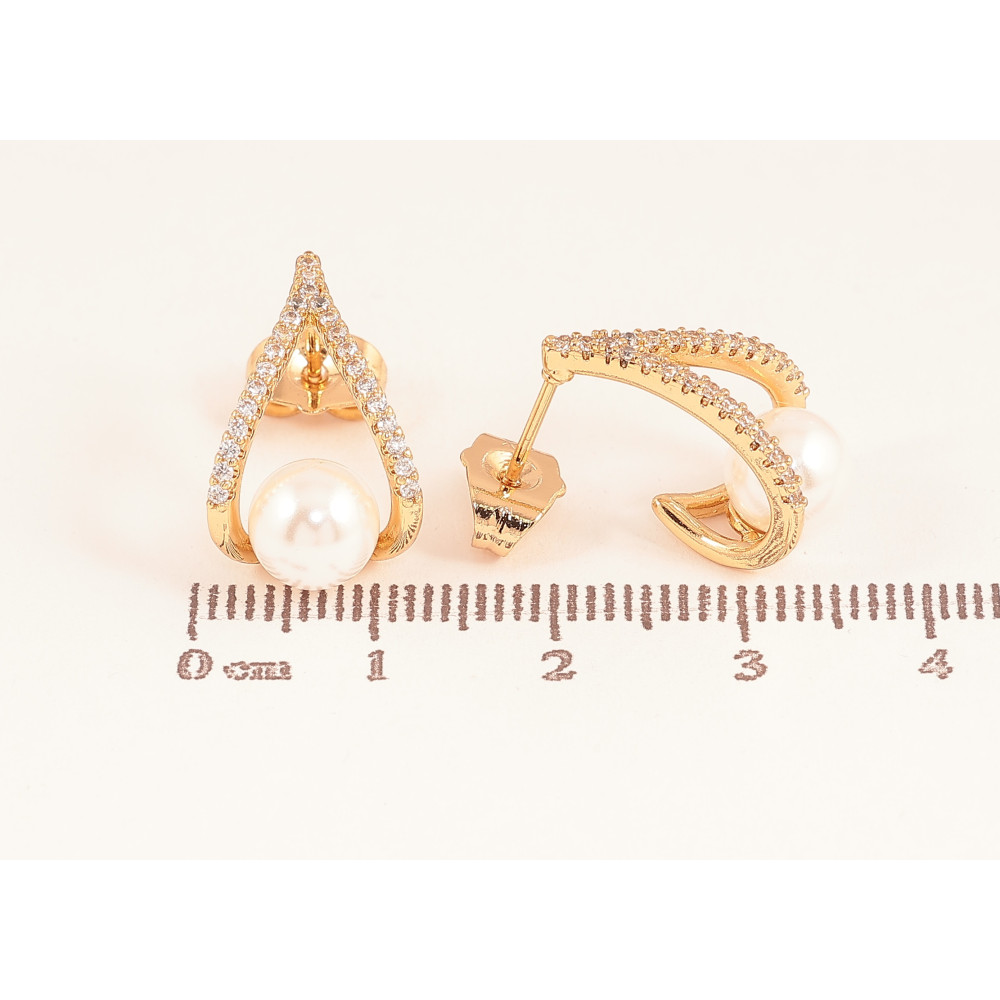 Серьги Xuping цвет Позолота 18К пусеты "Узор с жемчужинами и кристаллами"