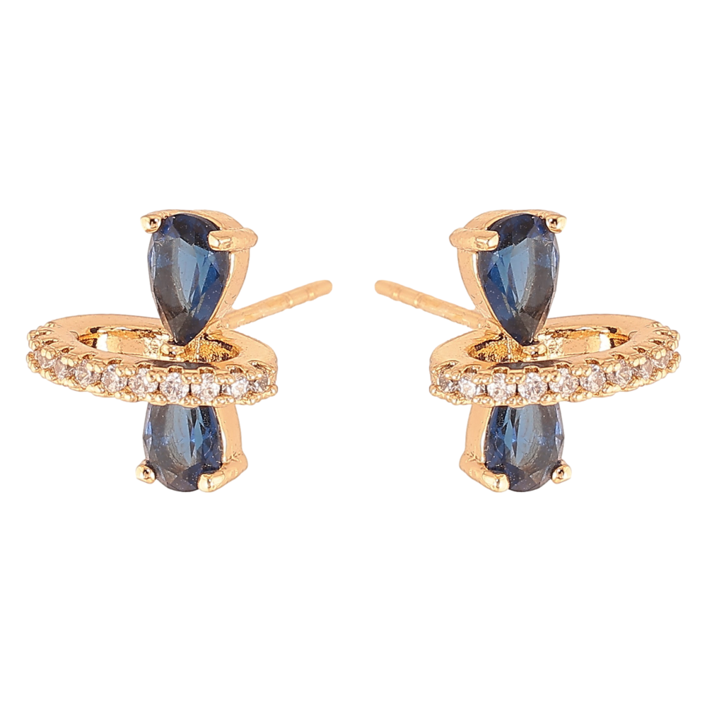 Серьги Xuping цвет Позолота 18К пусеты "Узор с синими кристаллами"