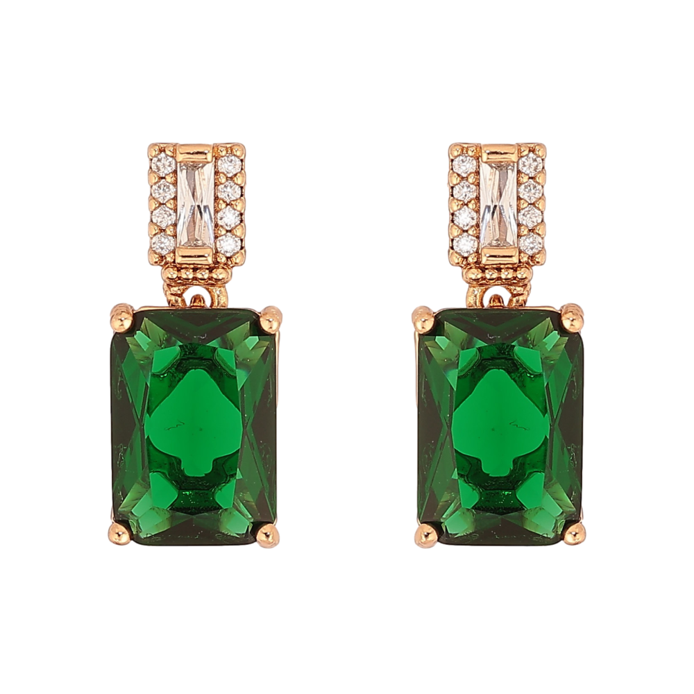 Серьги Xuping цвет Позолота 18К пусеты "Узор с зелеными кристаллами"
