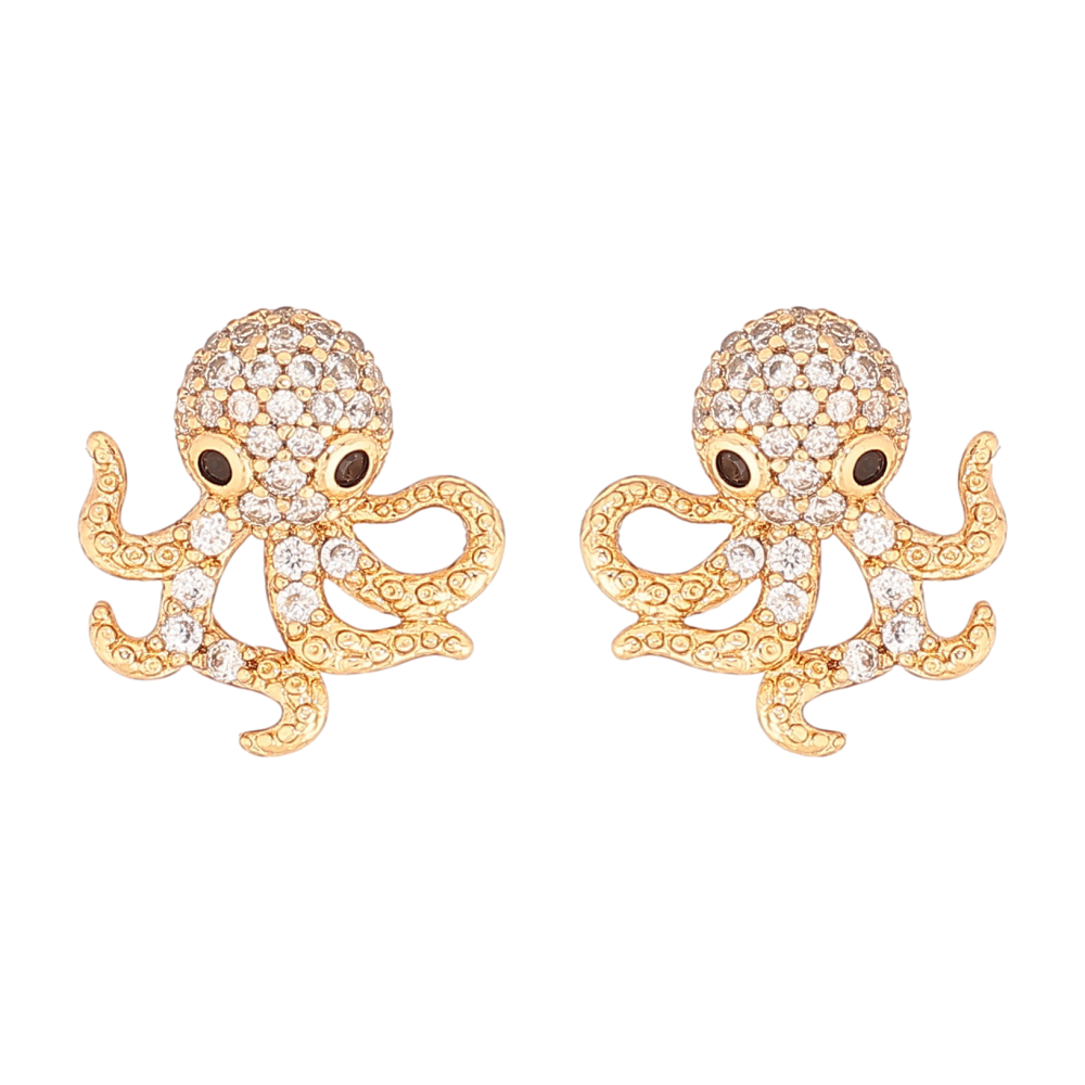 Серьги Xuping цвет Позолота 18К пусеты "Восьминоги с инкрустацией кристаллами"