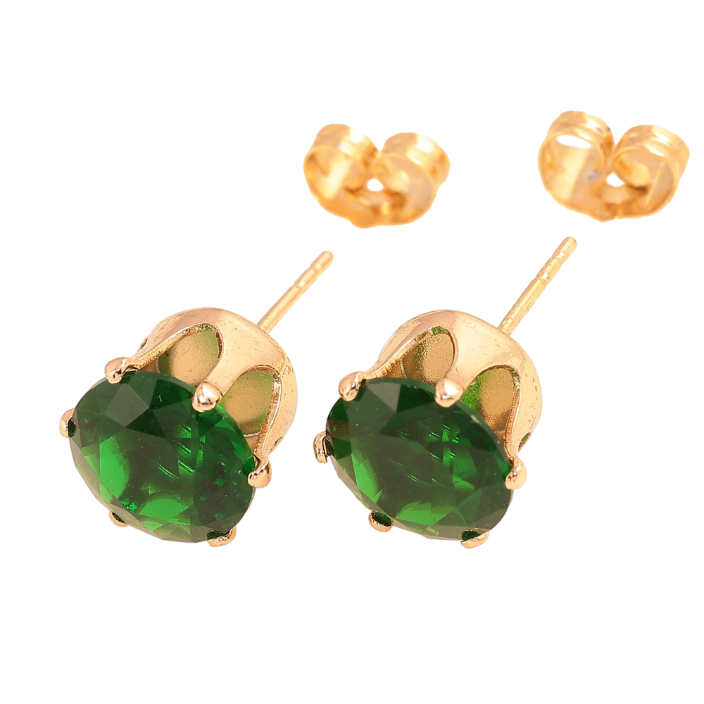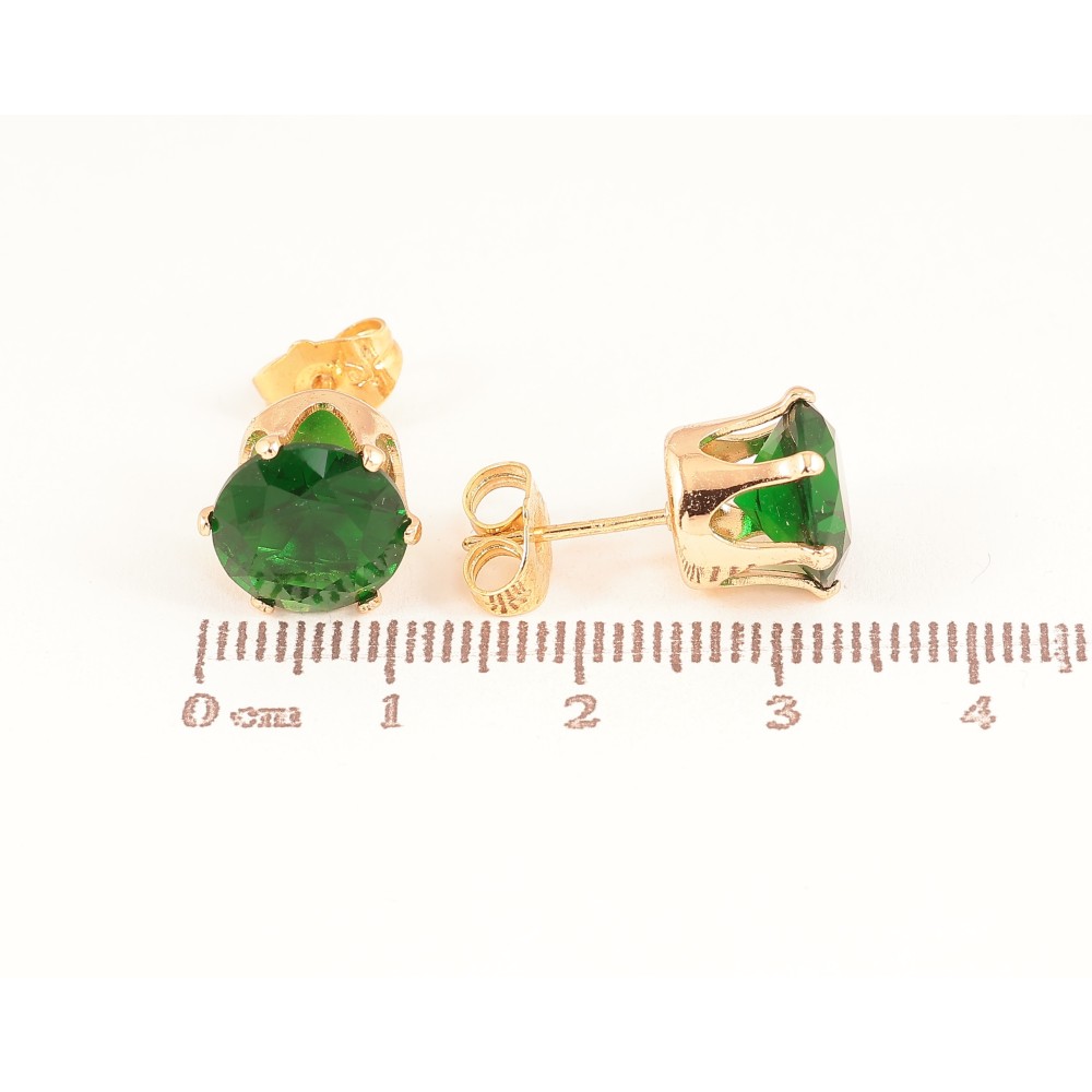 Серьги Xuping цвет Позолота 18К пусеты "Зеленые кристаллы в 6-ти крапановой оправе" ø 10мм