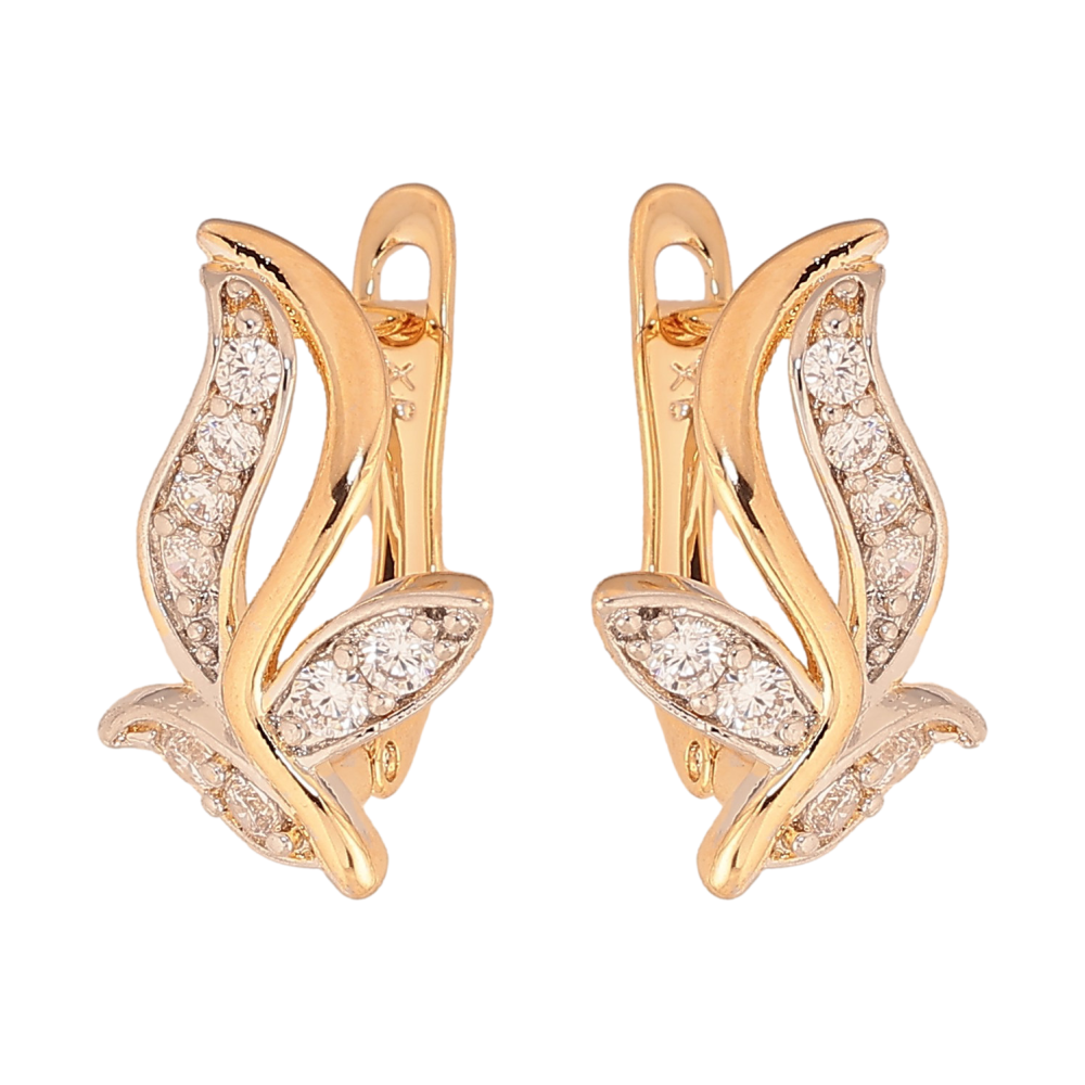 Серьги Xuping цвет Позолота 18К+Родий английский замок "Листики с кристаллами"