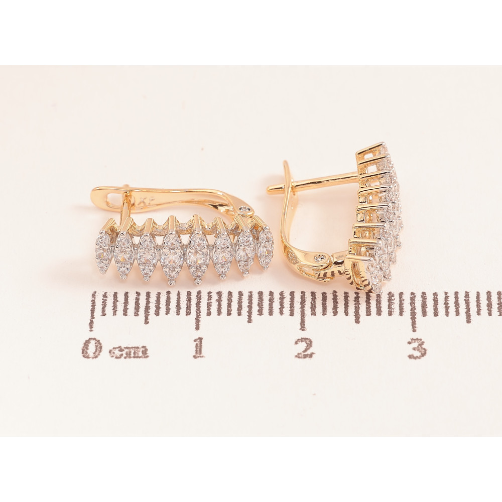 Серьги Xuping цвет позолота 18K + родий английский замок узор с инкрустацией кристаллами фото №1