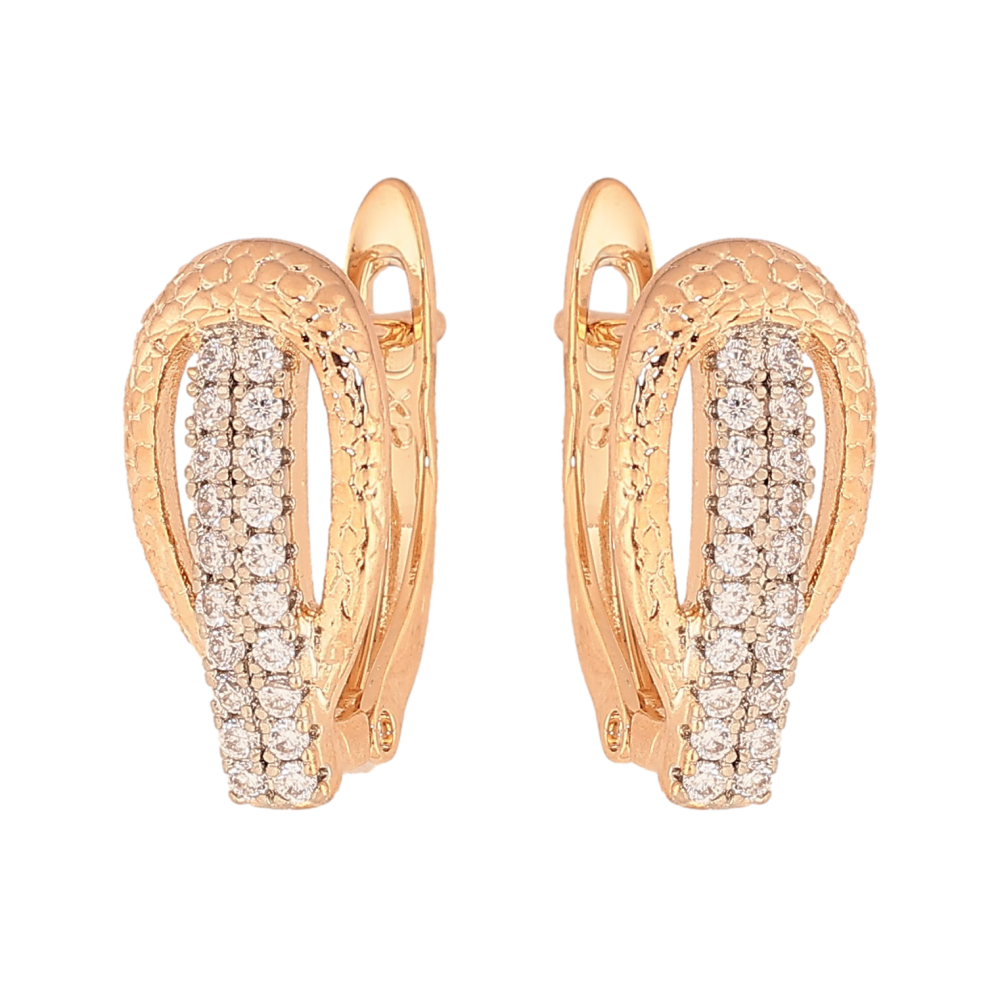 Серьги Xuping цвет Позолота 18K + Родий английский замок "Узор с кристаллами"