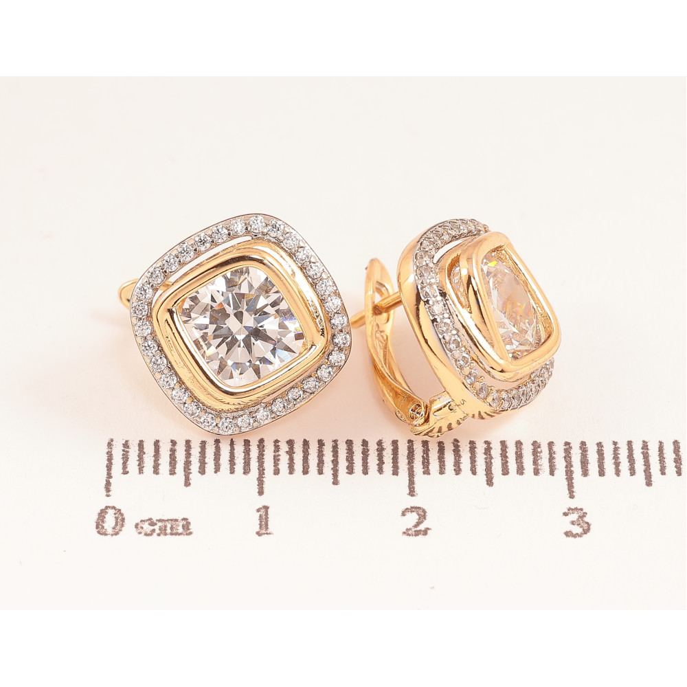 Серьги Xuping цвет позолота 18K + родий английский замок узор с кристаллами фото №1