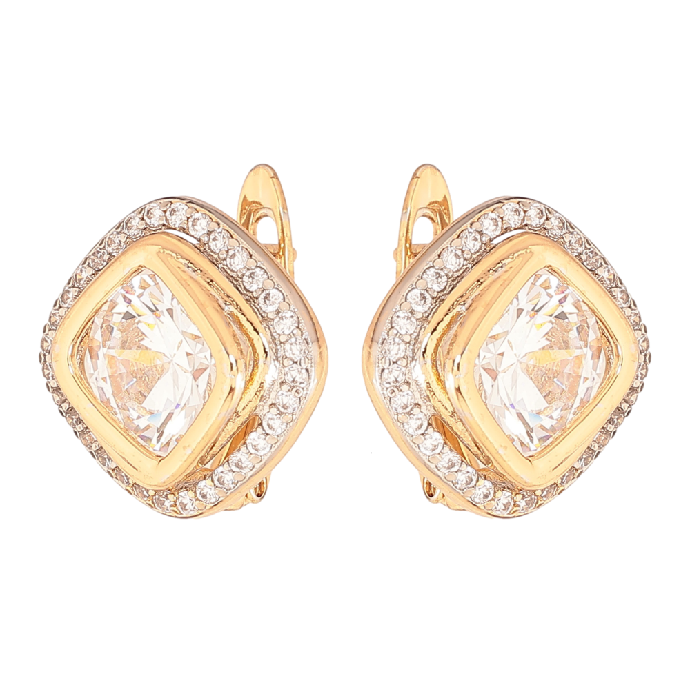 Серьги Xuping цвет позолота 18K + родий английский замок узор с кристаллами