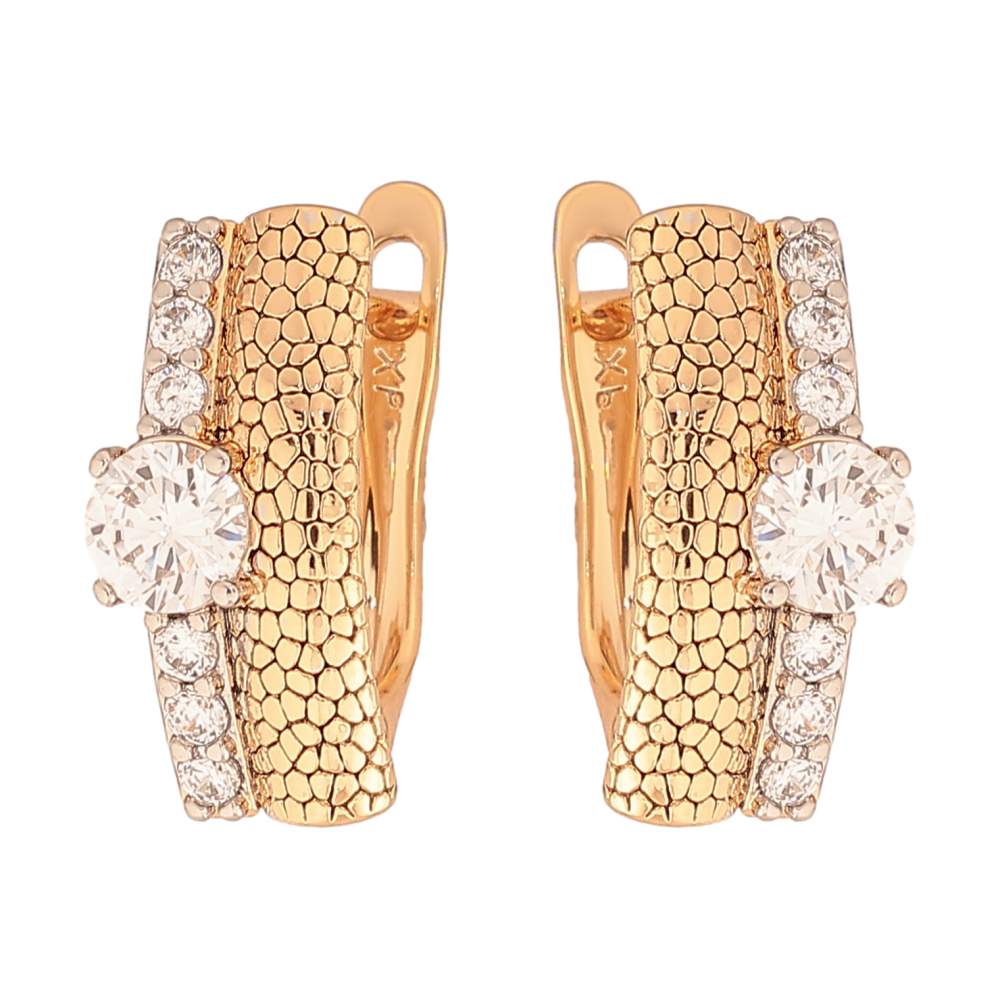 Серьги Xuping цвет позолота 18K + родий английский замок узор с кристаллами