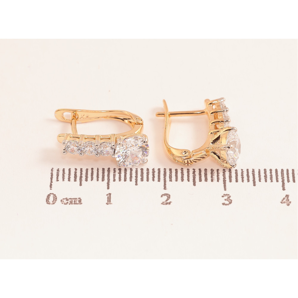 Серьги Xuping цвет позолота 18K + родий английский замок узор с кристаллами