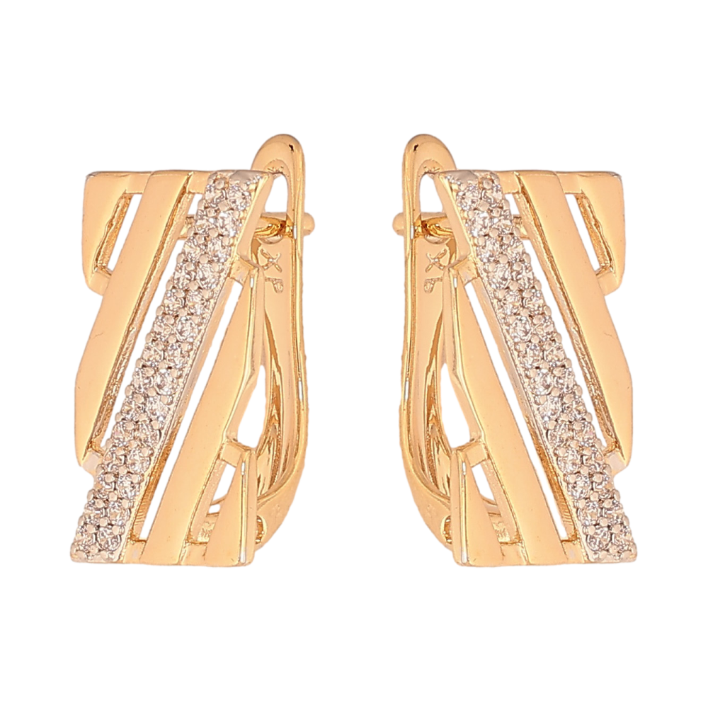 NEW SALE -15% Серьги Xuping цвет Позолота 18K + Родий английский замок "Узор с кристаллами" фото №1