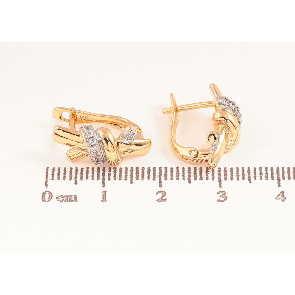 Серьги Xuping цвет Позолота 18K + Родий английский замок "Узор с кристаллами"