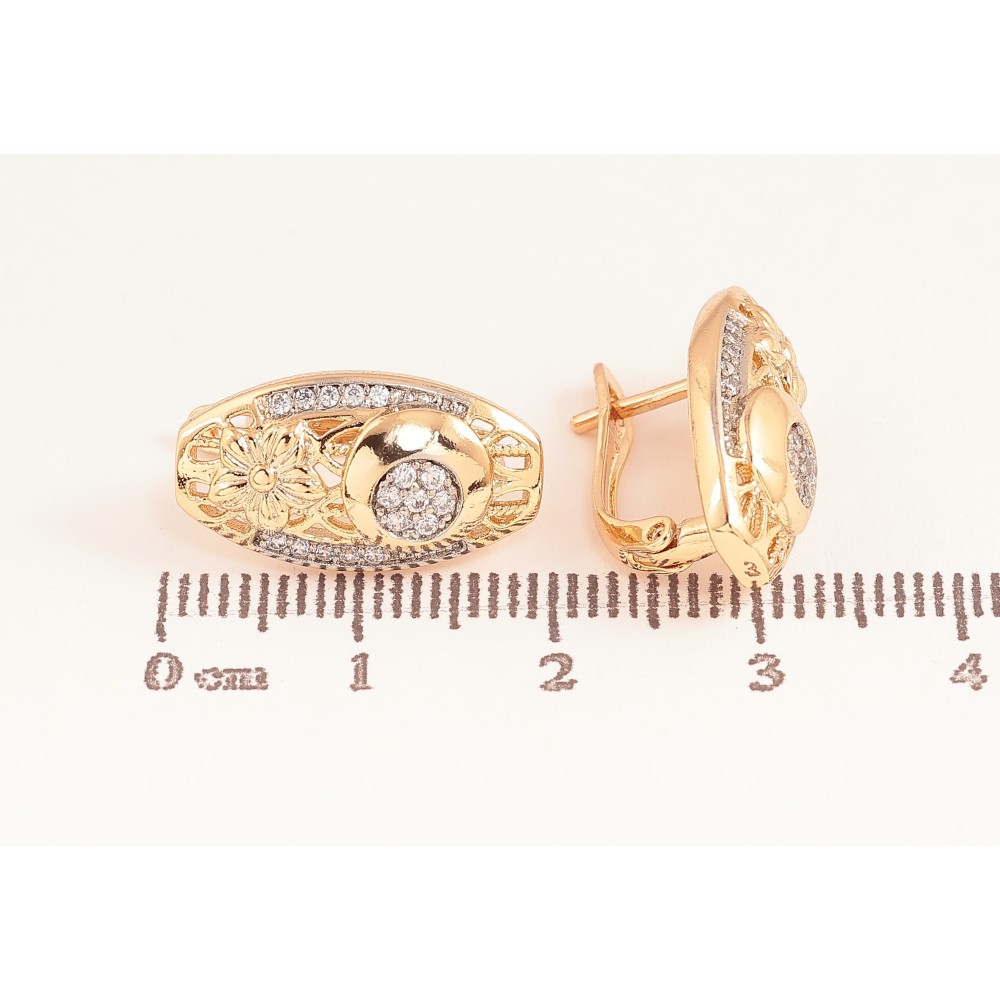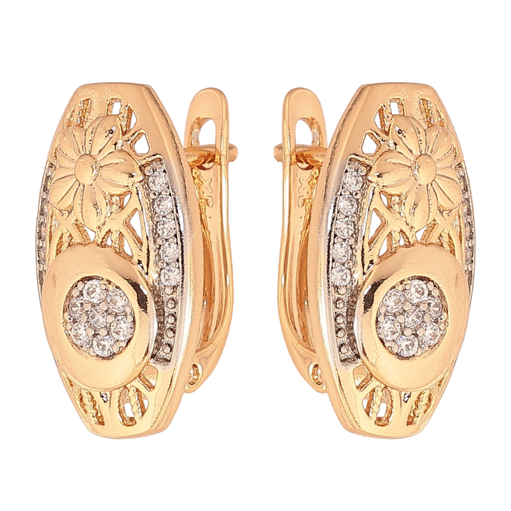 SALE -15% Серьги Xuping цвет Позолота 18K + Родий английский замок "Узор с кристаллами" фото №1