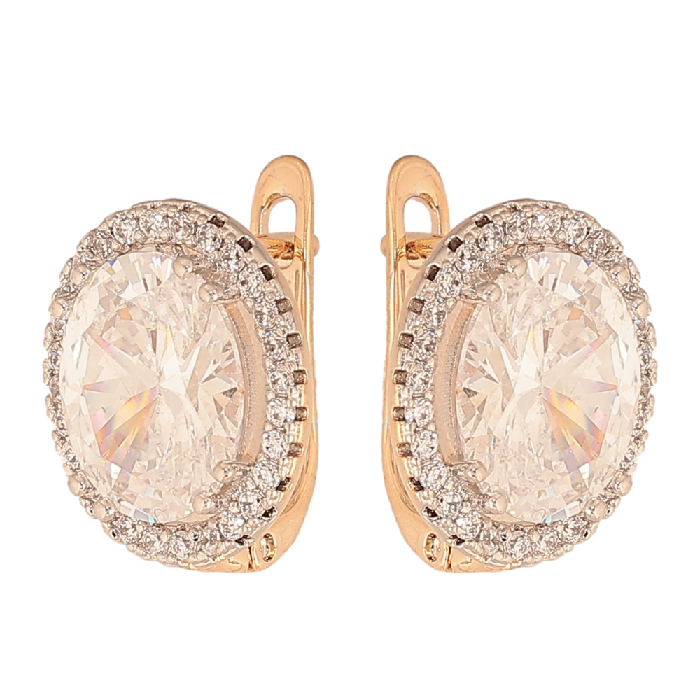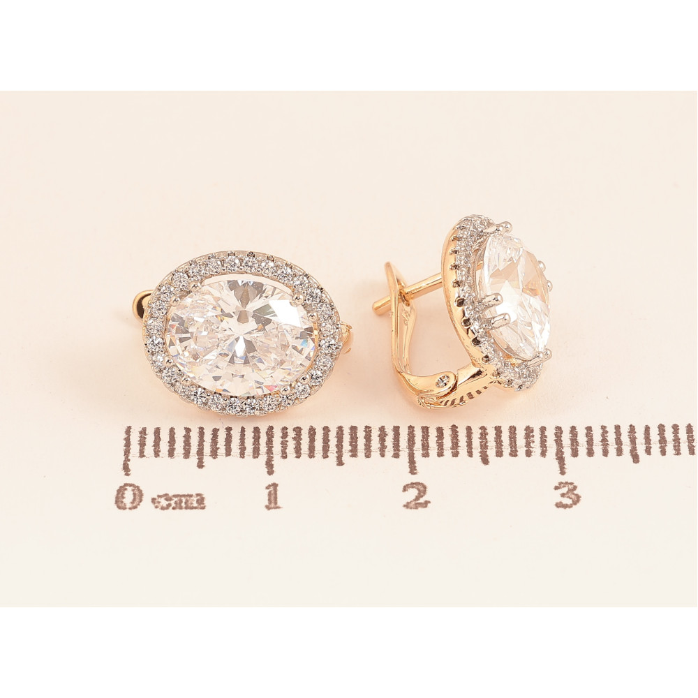 Серьги Xuping цвет Позолота 18К+Родий английский замок "Узор с кристаллами" фото №1