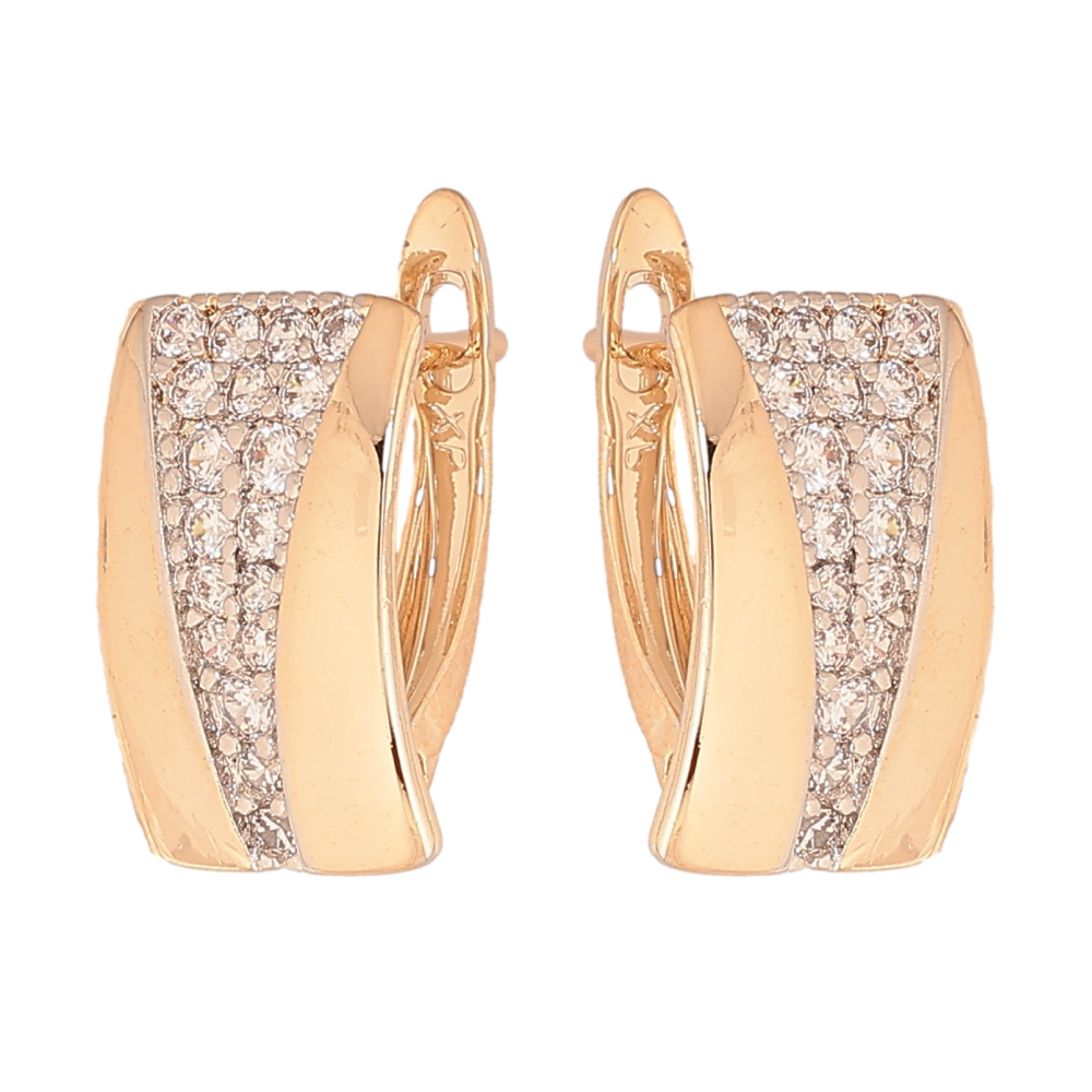 Серьги Xuping цвет Позолота 18К+Родий английский замок "Узор с кристаллами" фото №1