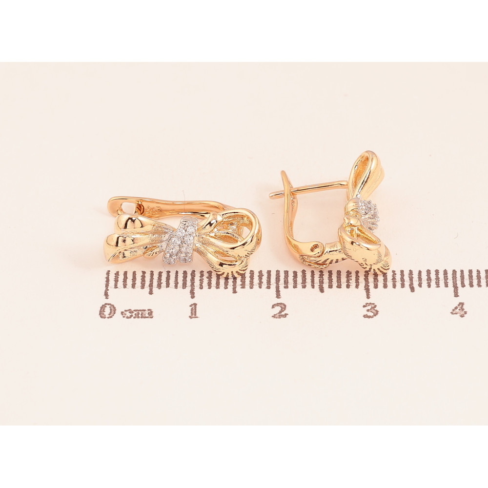 Серьги Xuping цвет Позолота 18К+Родий английский замок "Узор с кристаллами"