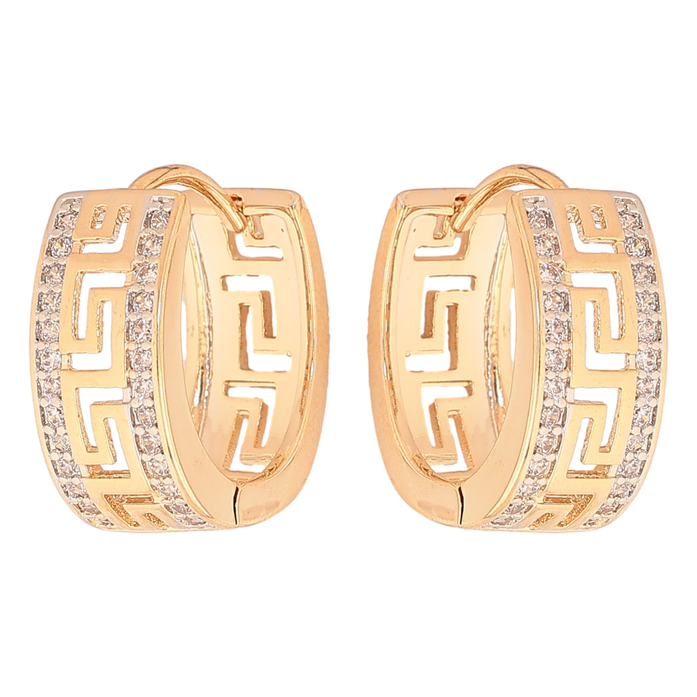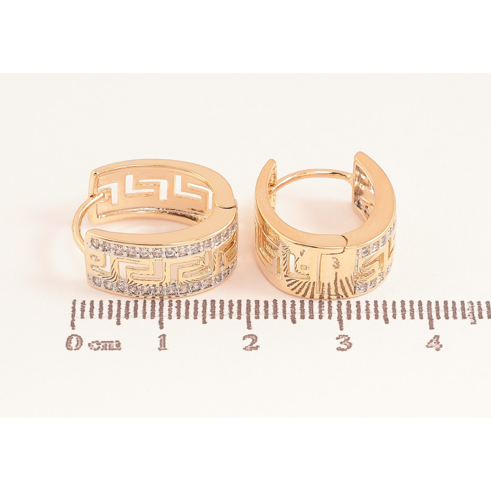 Серьги Xuping цвет Позолота 18K + Родий колечки "Меандровая линия с дорожками кристаллов"