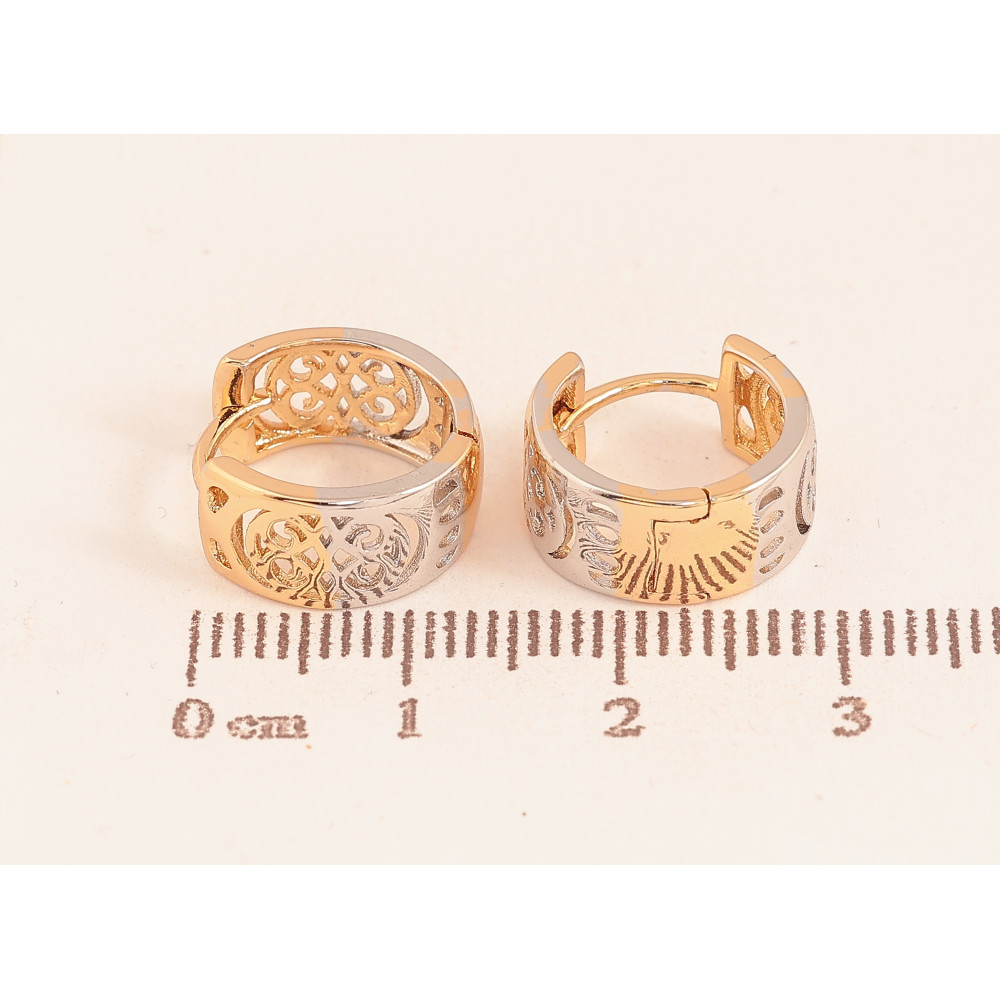 Серьги Xuping цвет Позолота 18К + Родий колечки "Резной узор"