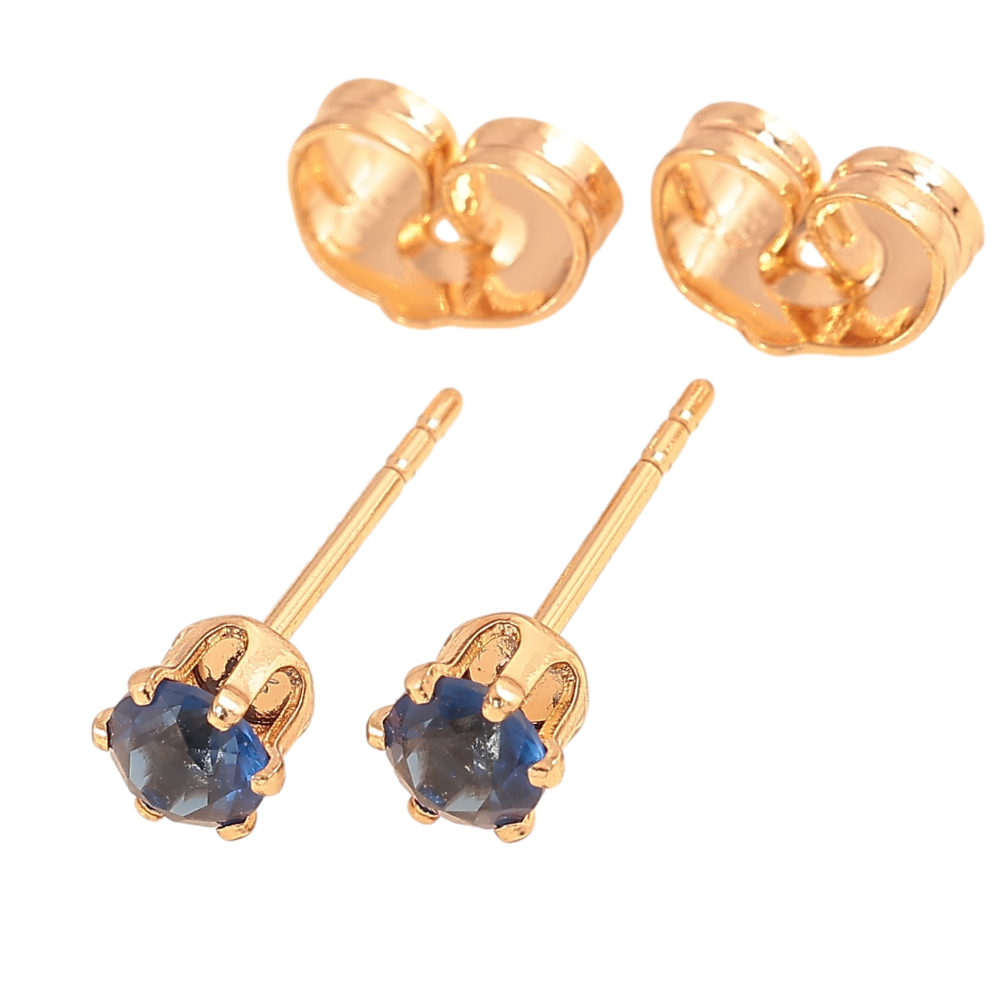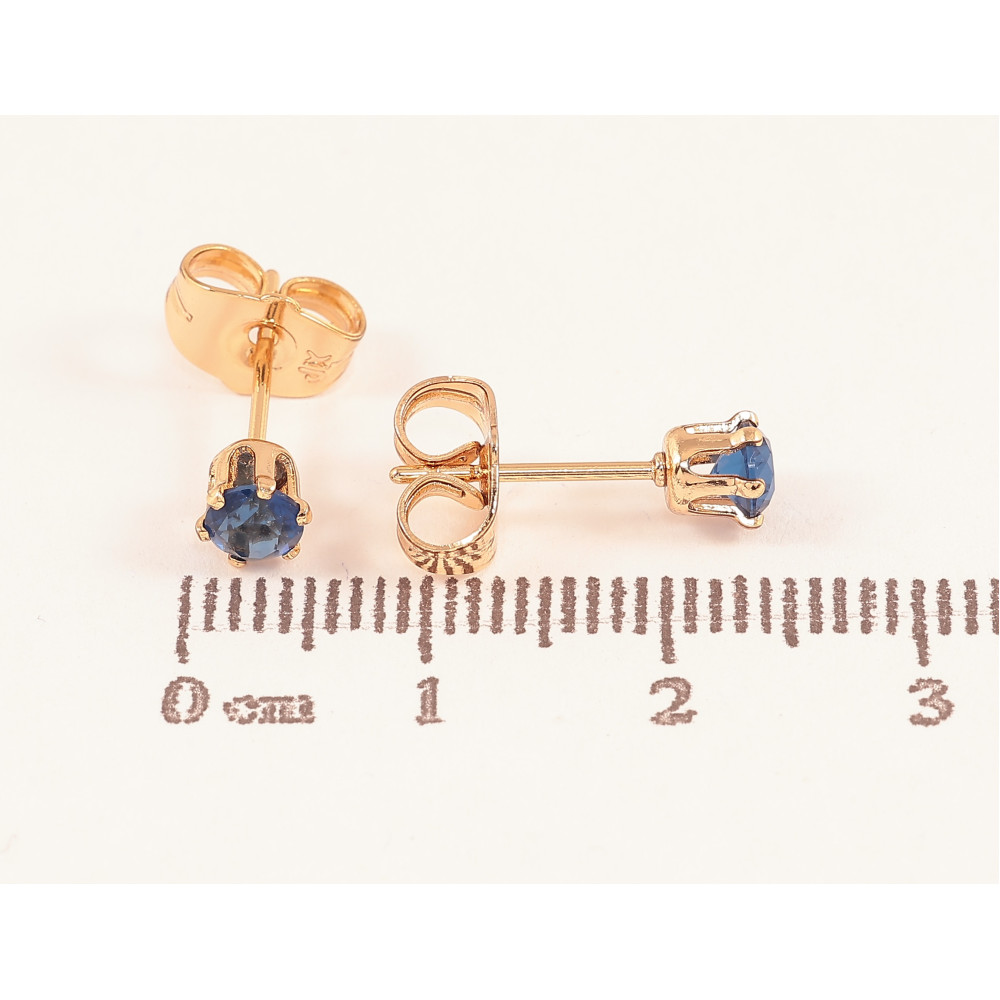 Серьги Xuping цвет Позолота 18К пусеты "Синие кристаллы в 6-ти крапановой оправе" ø 4мм