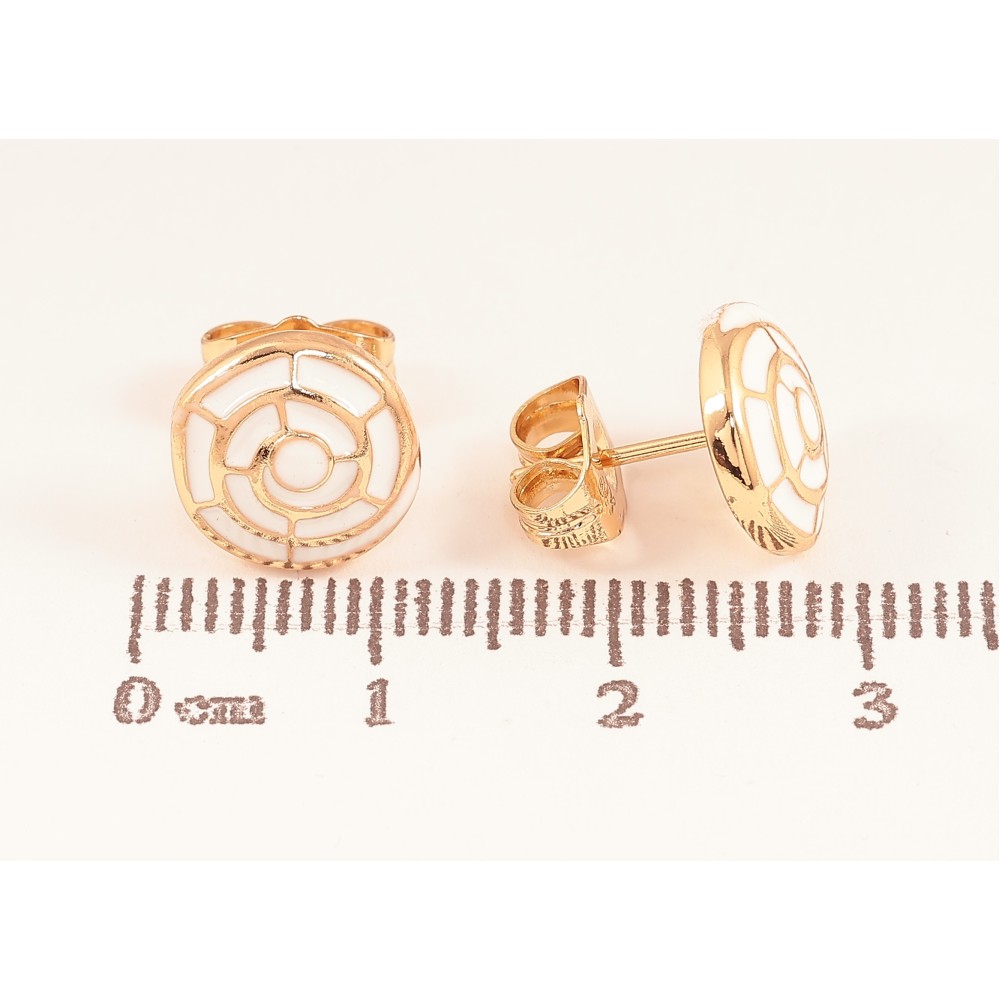 Серьги Xuping цвет Позолота 18К пусеты "Узор с белой эмалью"