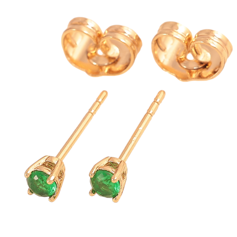 Серьги Xuping цвет Позолота 18К пусеты "Зеленые кристаллы в 4-х крапановой оправе" ø 3мм