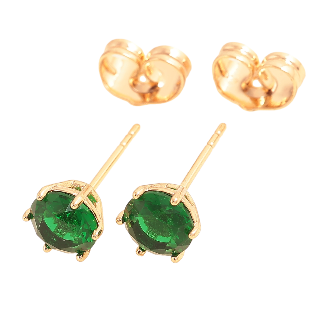 Серьги Xuping цвет Позолота 18К пусеты "Зеленые кристаллы в 6-ти крапановой оправе" ø 6мм