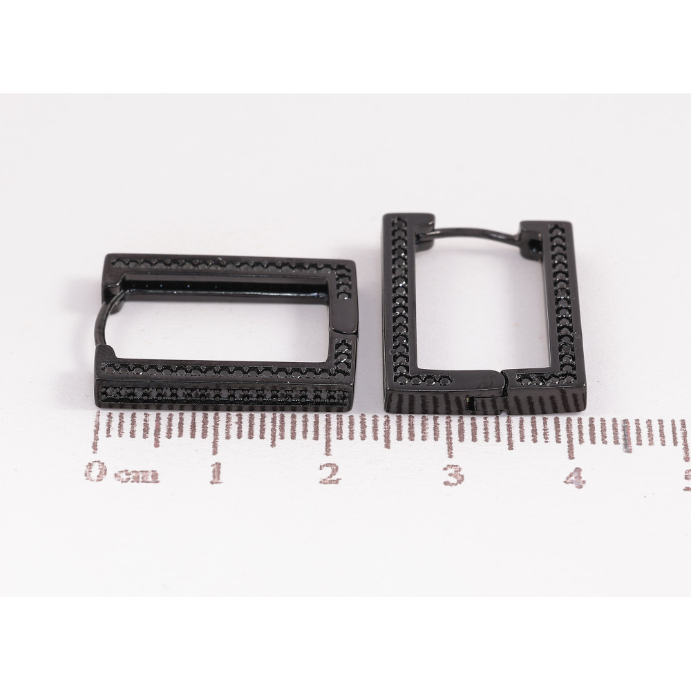 Серьги Xuping цвет Позолота Black (черное золото) колечки "Прямоугольные с черными кристаллами"