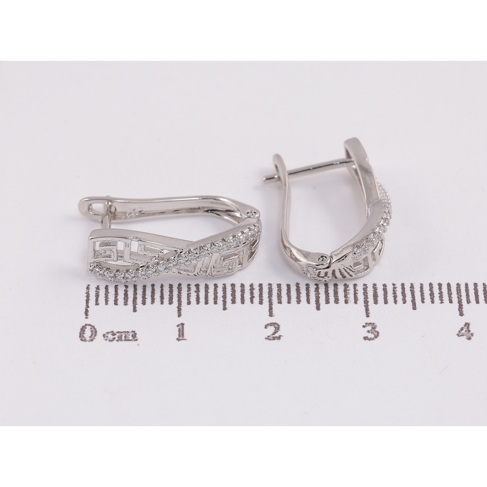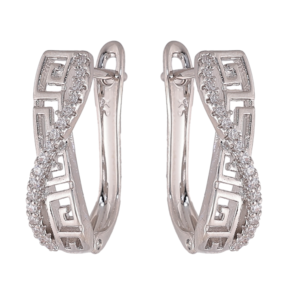 Серьги Xuping цвет Родий английский замок "Греческий узор с дорожкой кристаллов"