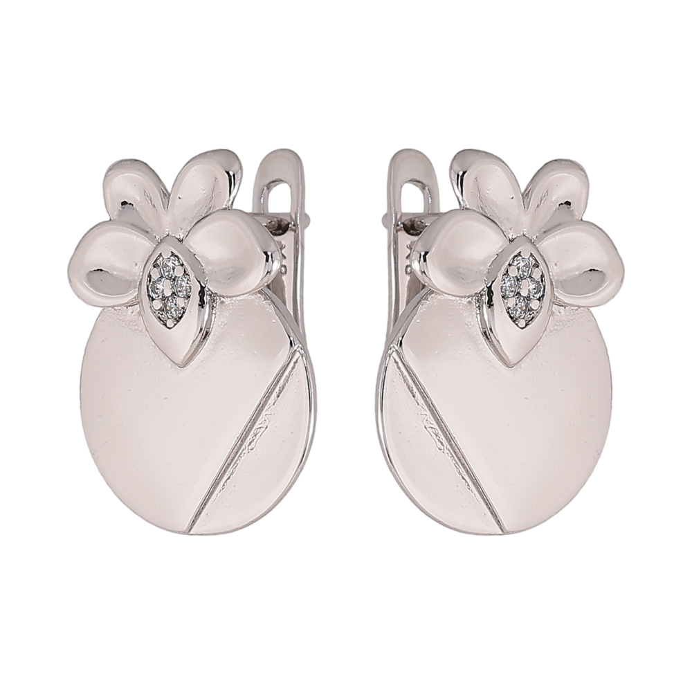 Серьги Xuping цвет Родий английский замок "Цветочный узор с кристаллами"
