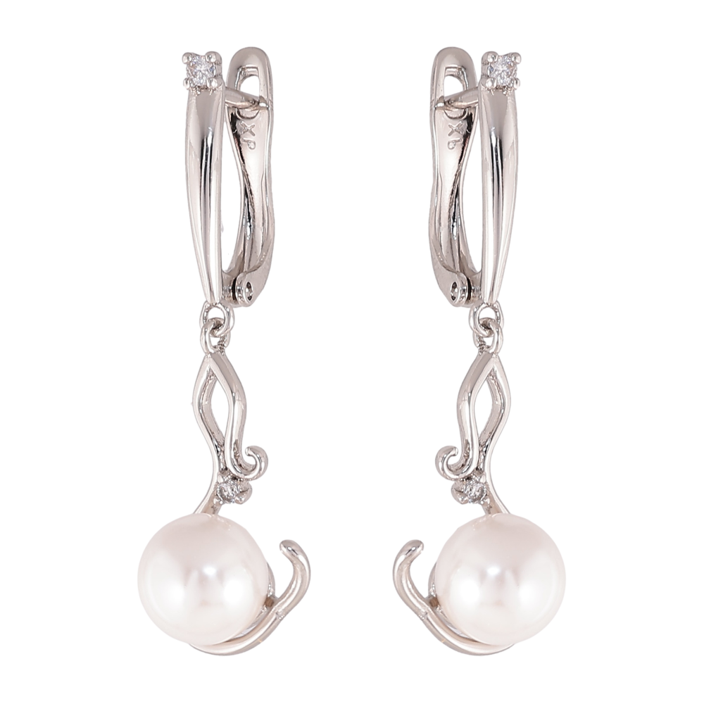 Серьги Xuping цвет Родий английский замок "Жемчужные подвески"