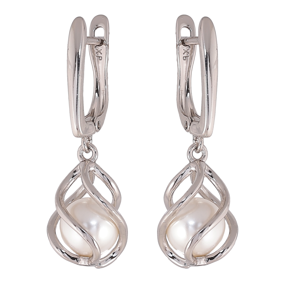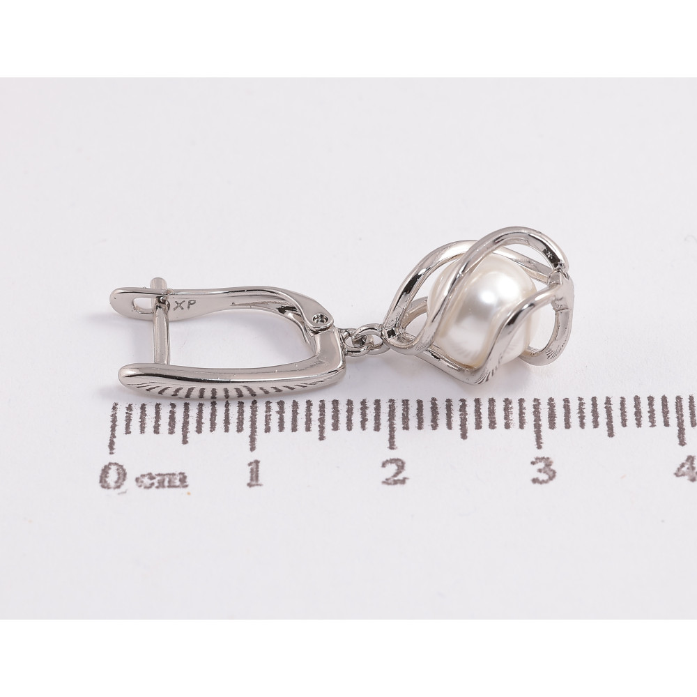 Серьги Xuping цвет Родий английский замок "Жемчужные подвески"