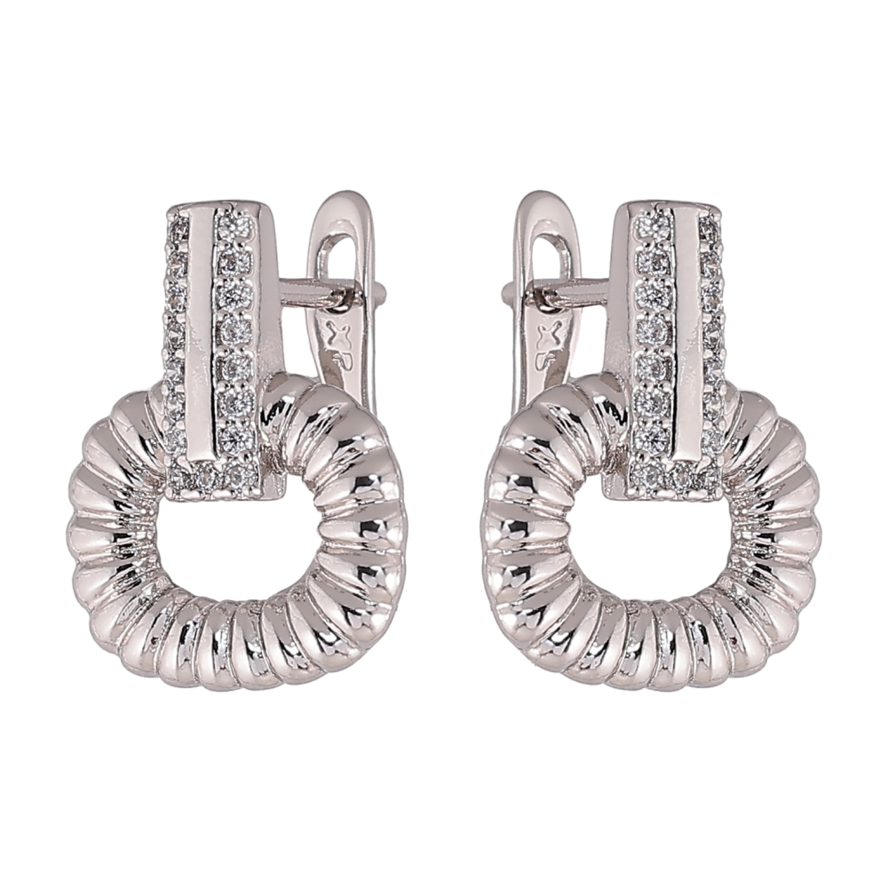 Серьги Xuping цвет Родий английский замок "Узор с кристаллами" фото №1