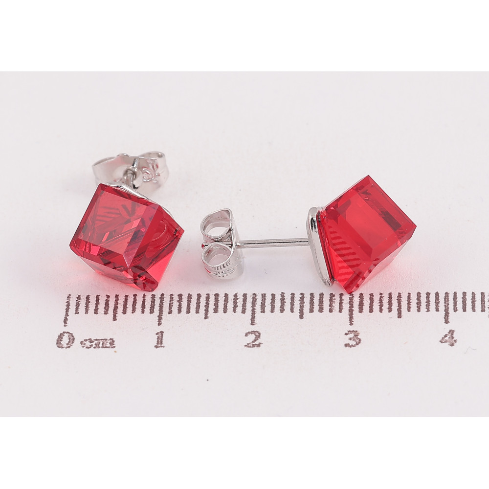 Серьги Xuping цвет Родий с кристаллами Swarovski пусеты "Кристальные кубики Siam" 8х8мм