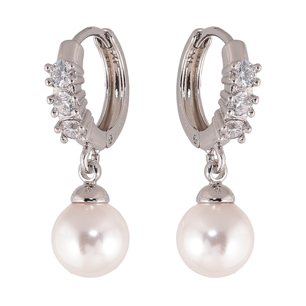 Серьги Xuping цвет Родий подвески на колечках "Жемчужины"