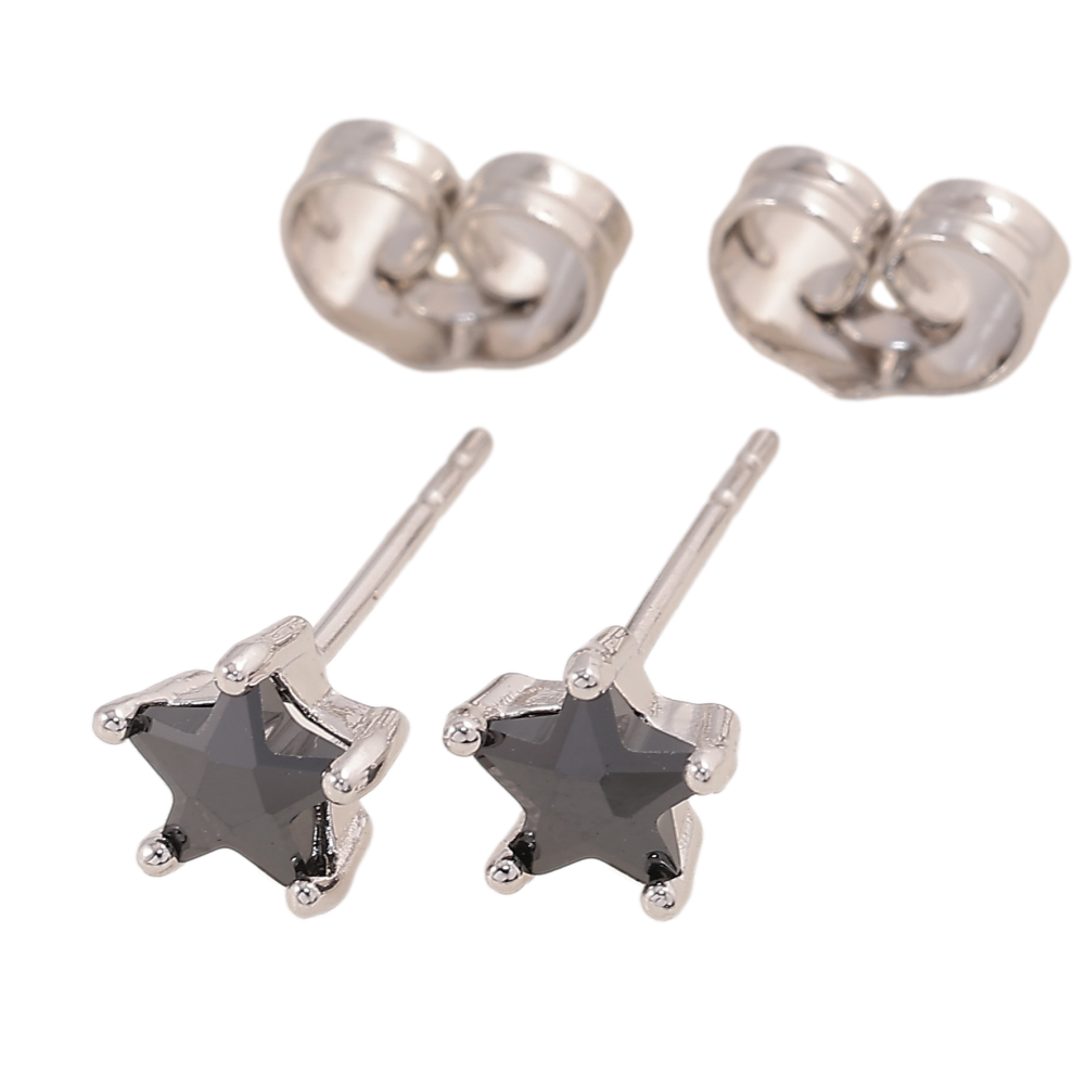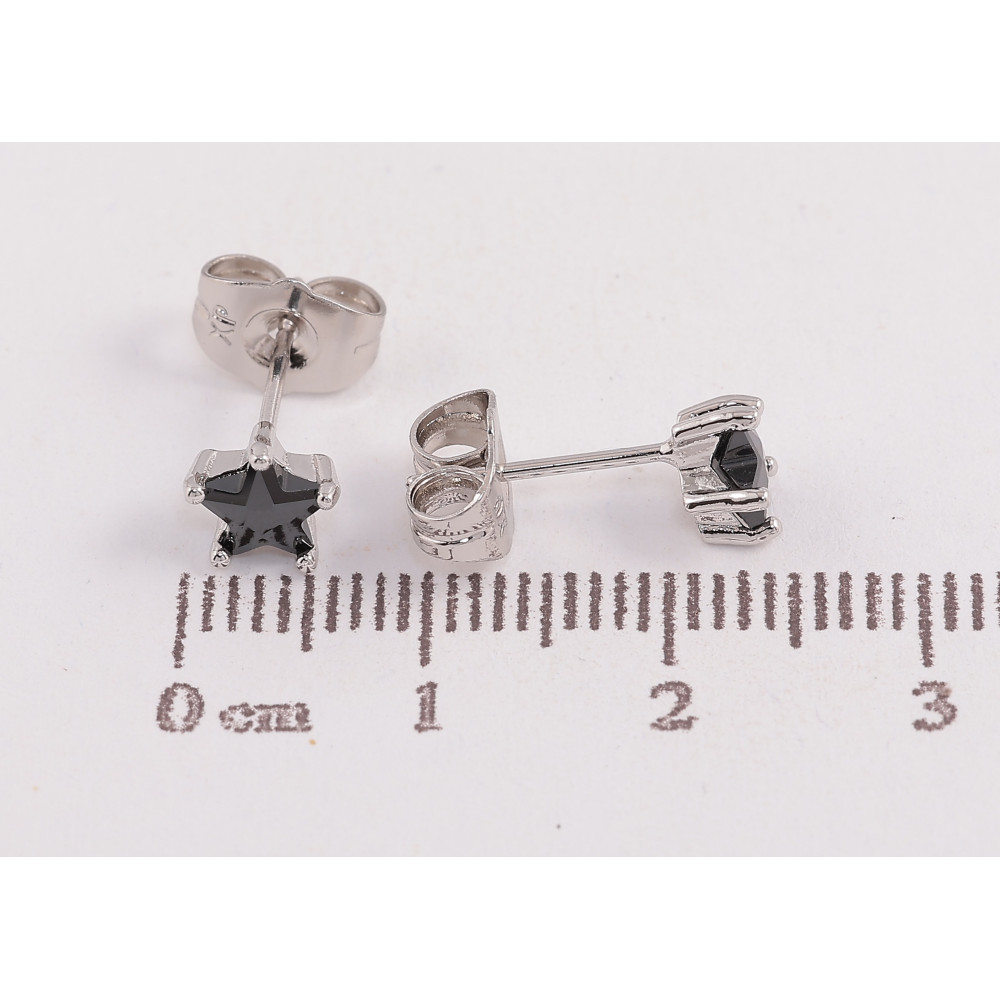 Серьги Xuping цвет Родий пусеты "Черные кристальные звездочки" ø 6мм
