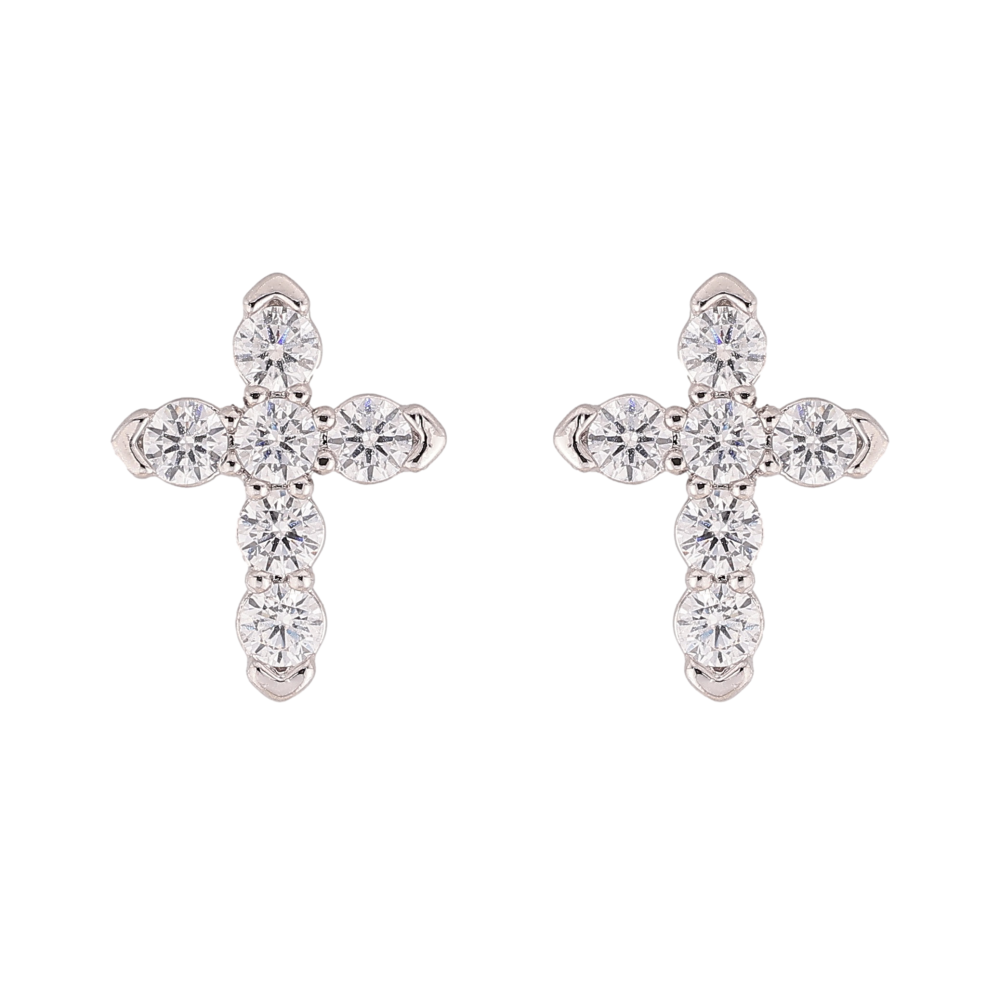 Серьги Xuping цвет Родий пусеты "Крестики с кристаллами"
