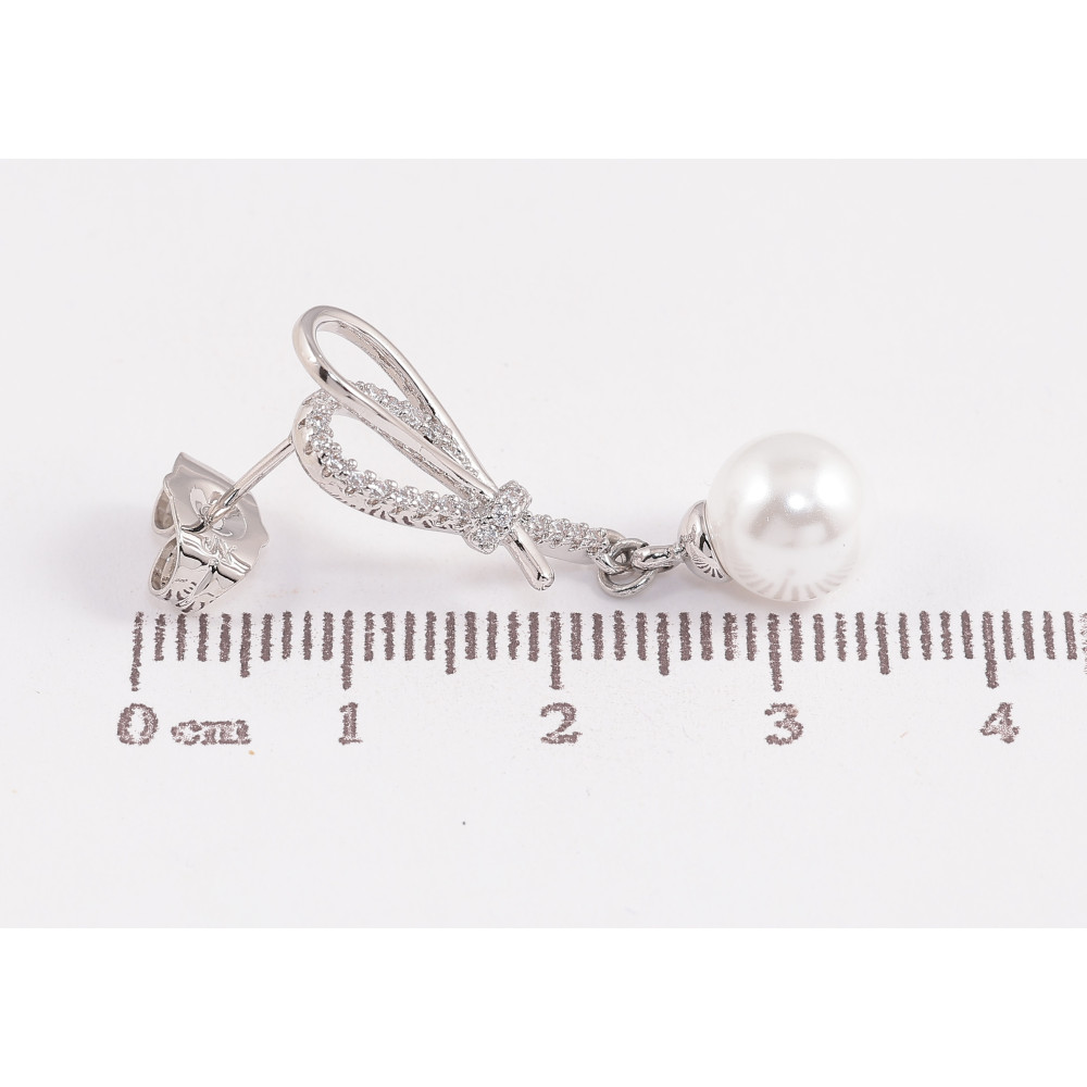 Серьги Xuping цвет Родий пусеты "Петельки с жемчужными подвесками"